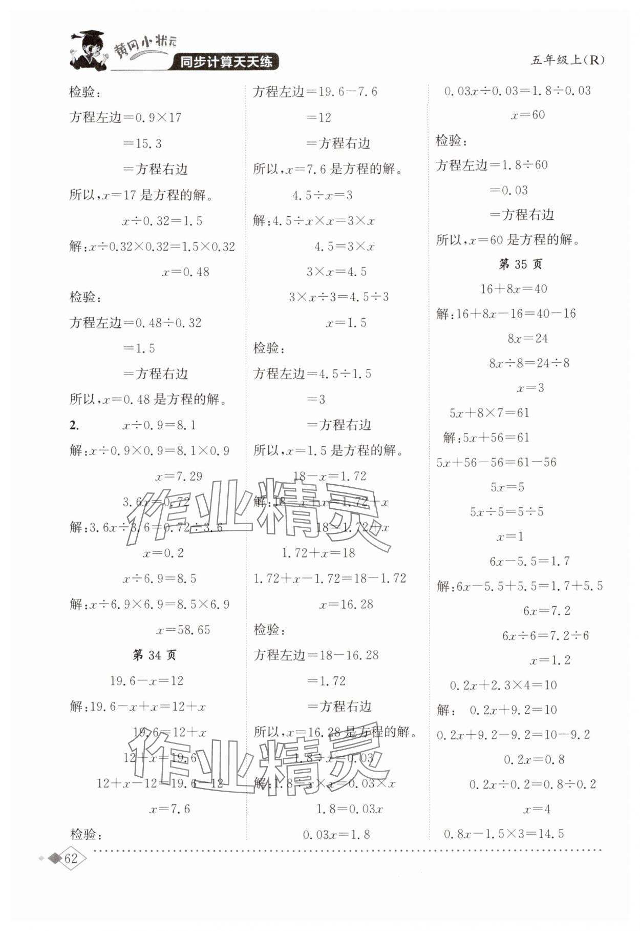 注:目前有些书本章节名称可能整理的还不是很完善,但都是按照顺序排列的,请同学们按照顺序仔细查找。练习册 2024年黄冈小状元同步计算天天练五年级数学上册人教版广东专版 答案主要是用来给同学们做完题方便对答案用的,请勿直接抄袭。