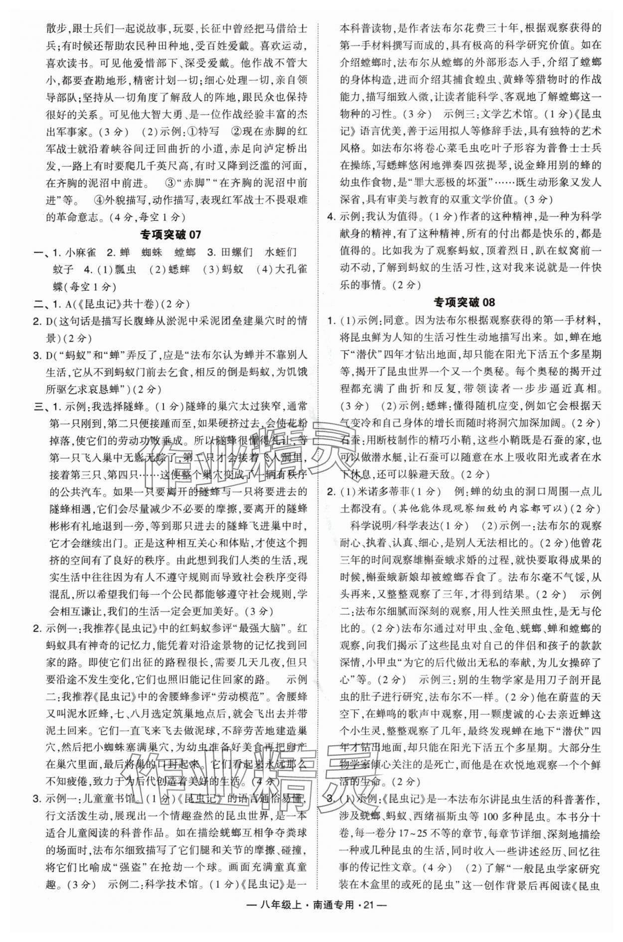 注:目前有些书本章节名称可能整理的还不是很完善,但都是按照顺序排列的,请同学们按照顺序仔细查找。练习册 2024年学霸组合训练八年级语文上册人教版南通专版 答案主要是用来给同学们做完题方便对答案用的,请勿直接抄袭。