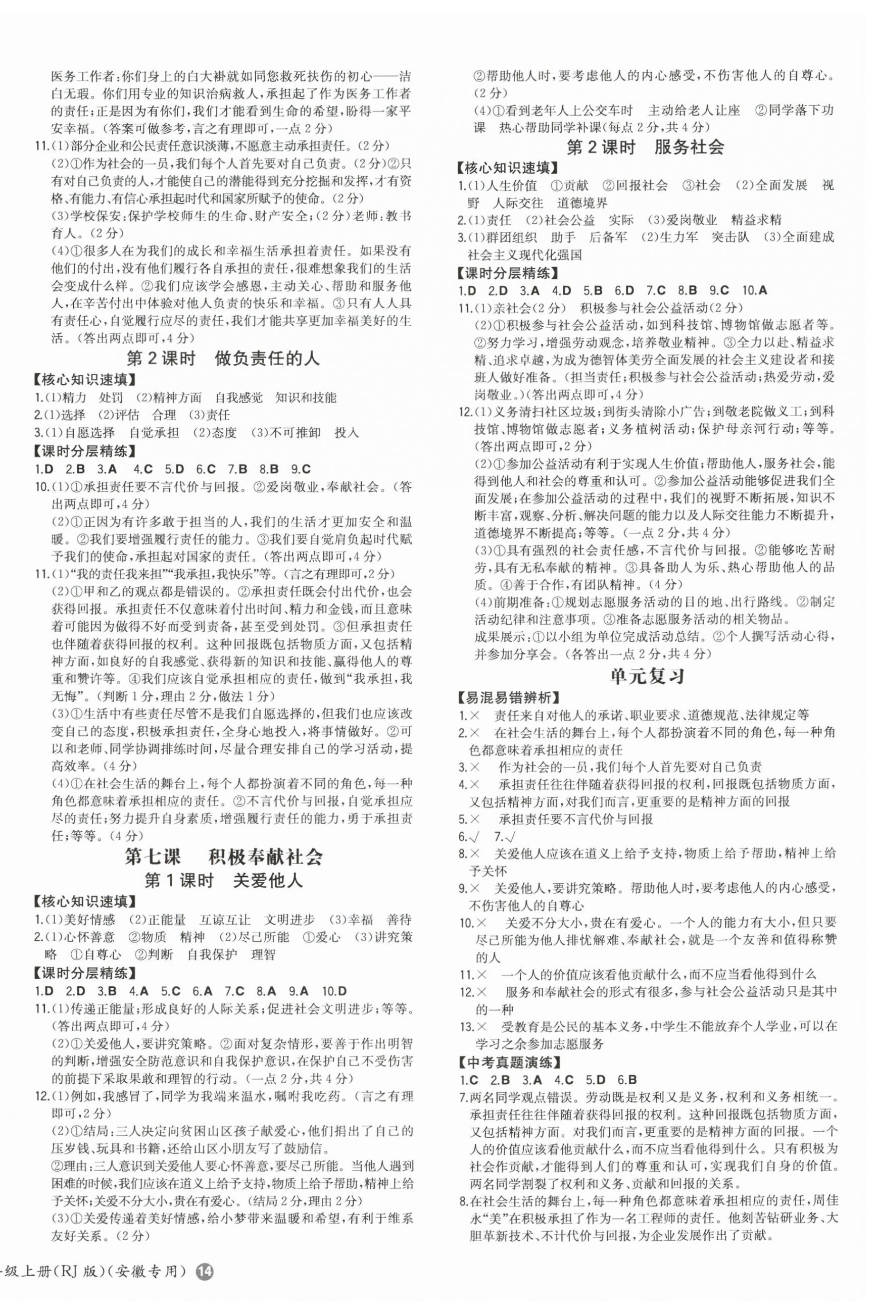 注:目前有些书本章节名称可能整理的还不是很完善,但都是按照顺序排列的,请同学们按照顺序仔细查找。练习册 2024年一本八年级道德与法治上册人教版安徽专版 答案主要是用来给同学们做完题方便对答案用的,请勿直接抄袭。