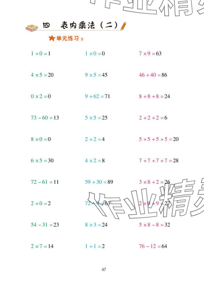 注:目前有些书本章节名称可能整理的还不是很完善,但都是按照顺序排列的,请同学们按照顺序仔细查找。练习册 2024年口算天天练二年级数学上册青岛版 答案主要是用来给同学们做完题方便对答案用的,请勿直接抄袭。