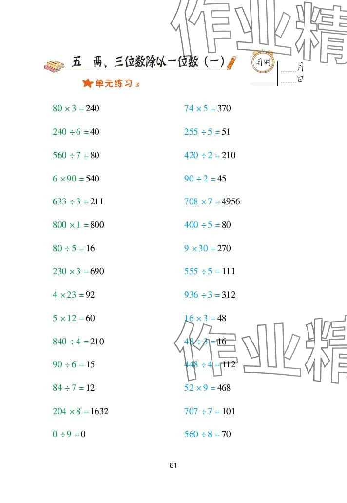 注:目前有些书本章节名称可能整理的还不是很完善,但都是按照顺序排列的,请同学们按照顺序仔细查找。练习册 2024年口算天天练三年级数学上册青岛版 答案主要是用来给同学们做完题方便对答案用的,请勿直接抄袭。