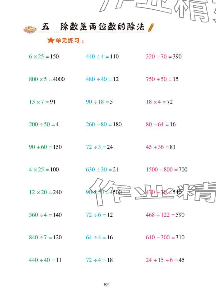 注:目前有些书本章节名称可能整理的还不是很完善,但都是按照顺序排列的,请同学们按照顺序仔细查找。练习册 2024年口算天天练四年级数学上册青岛版 答案主要是用来给同学们做完题方便对答案用的,请勿直接抄袭。
