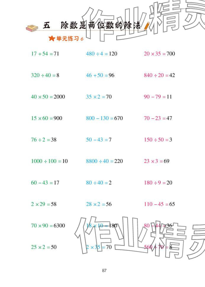 注:目前有些书本章节名称可能整理的还不是很完善,但都是按照顺序排列的,请同学们按照顺序仔细查找。练习册 2024年口算天天练四年级数学上册青岛版 答案主要是用来给同学们做完题方便对答案用的,请勿直接抄袭。