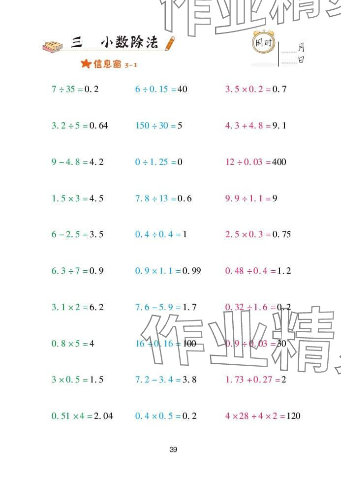 注:目前有些书本章节名称可能整理的还不是很完善,但都是按照顺序排列的,请同学们按照顺序仔细查找。练习册 2024年口算天天练五年级数学上册青岛版 答案主要是用来给同学们做完题方便对答案用的,请勿直接抄袭。