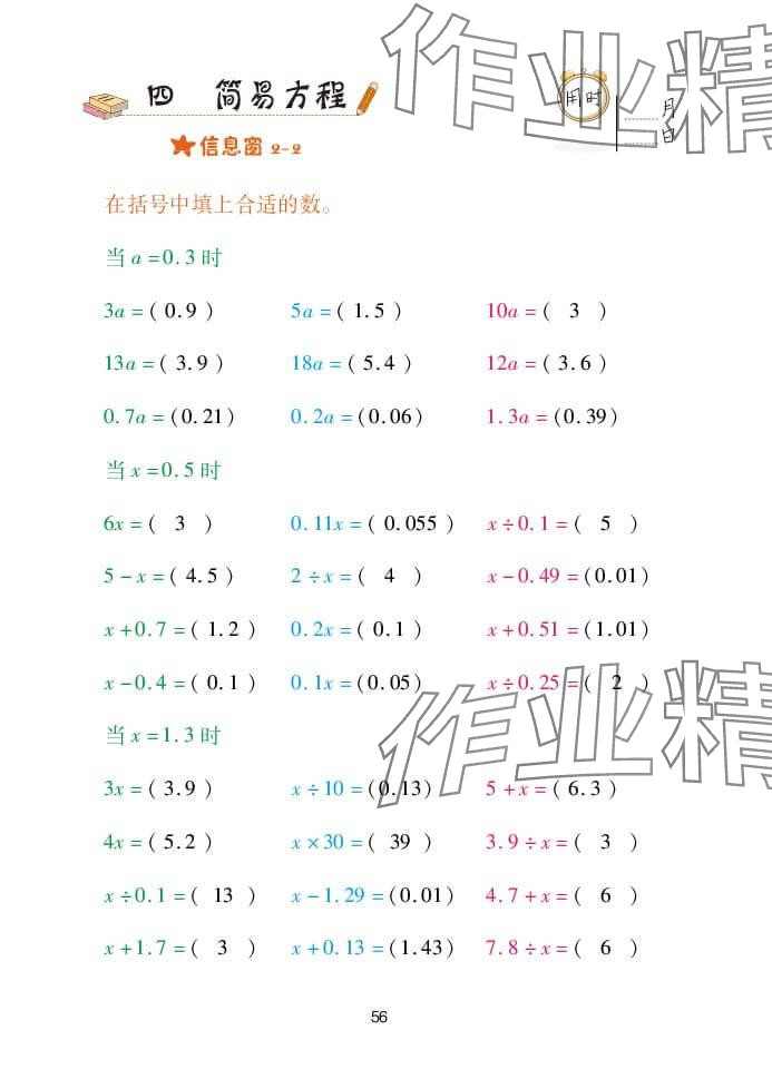 注:目前有些书本章节名称可能整理的还不是很完善,但都是按照顺序排列的,请同学们按照顺序仔细查找。练习册 2024年口算天天练五年级数学上册青岛版 答案主要是用来给同学们做完题方便对答案用的,请勿直接抄袭。