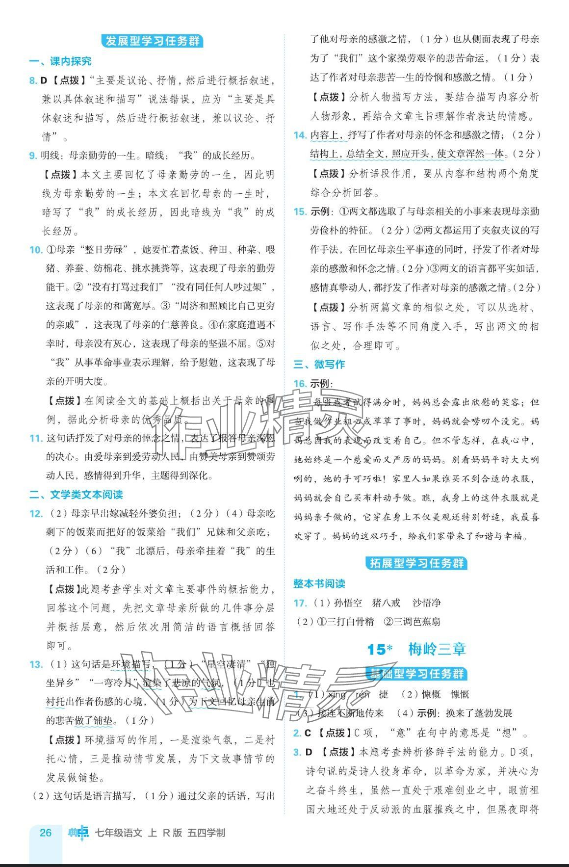注:目前有些书本章节名称可能整理的还不是很完善,但都是按照顺序排列的,请同学们按照顺序仔细查找。练习册 2024年综合应用创新题典中点七年级语文上册人教版五四制 答案主要是用来给同学们做完题方便对答案用的,请勿直接抄袭。
