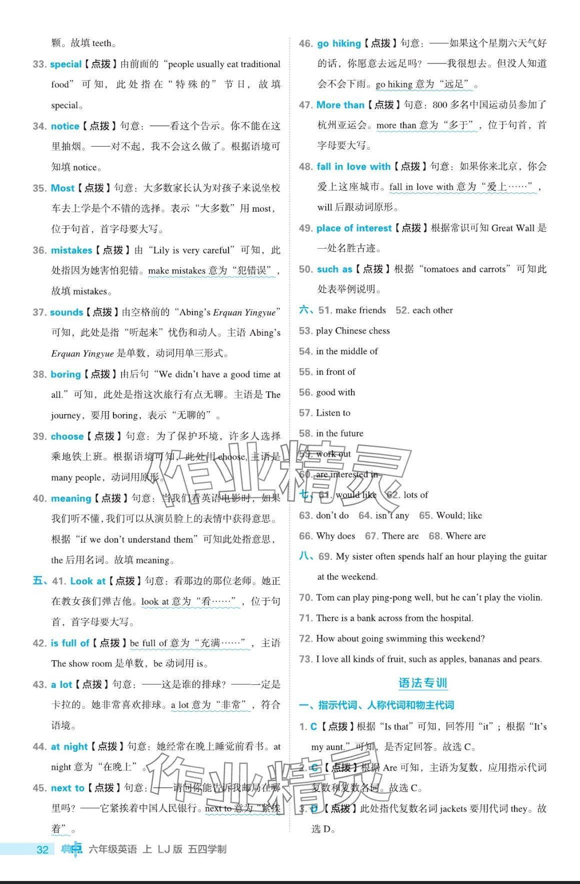 注:目前有些书本章节名称可能整理的还不是很完善,但都是按照顺序排列的,请同学们按照顺序仔细查找。练习册 2024年综合应用创新题典中点六年级英语上册鲁教版五四制 答案主要是用来给同学们做完题方便对答案用的,请勿直接抄袭。