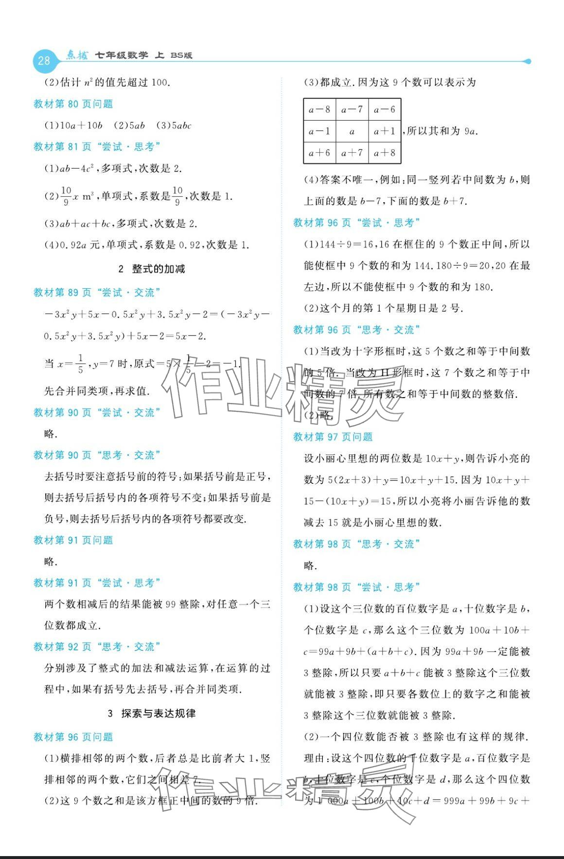 注:目前有些书本章节名称可能整理的还不是很完善,但都是按照顺序排列的,请同学们按照顺序仔细查找。练习册 2024年特高级教师点拨七年级数学上册北师大版 答案主要是用来给同学们做完题方便对答案用的,请勿直接抄袭。
