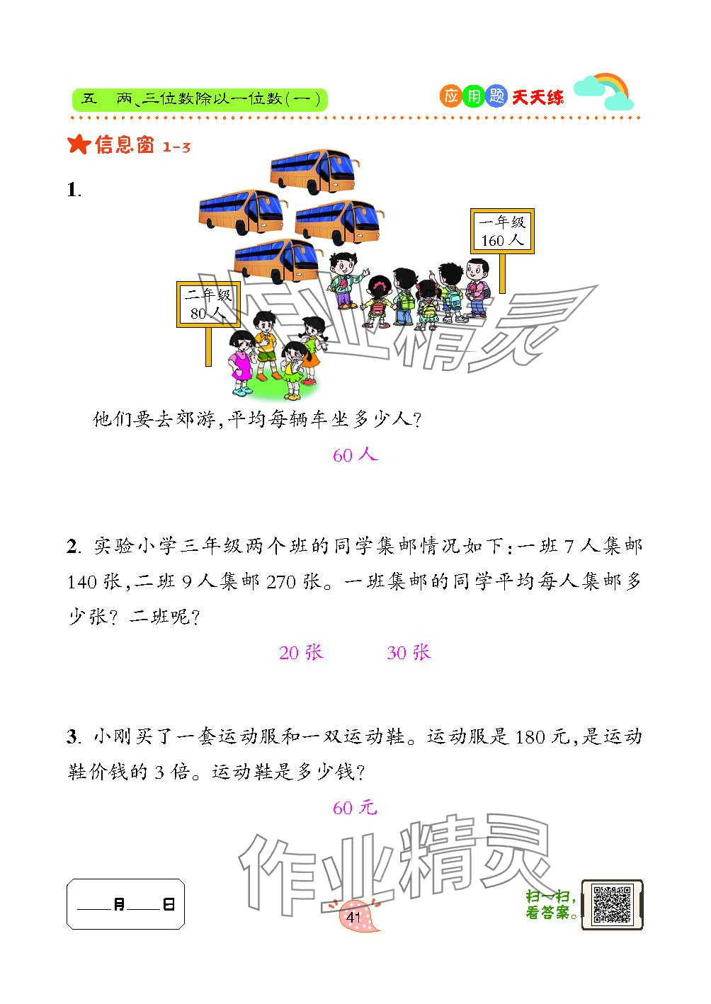 注:目前有些书本章节名称可能整理的还不是很完善,但都是按照顺序排列的,请同学们按照顺序仔细查找。练习册 2024年应用题天天练青岛出版社三年级数学上册青岛版 答案主要是用来给同学们做完题方便对答案用的,请勿直接抄袭。