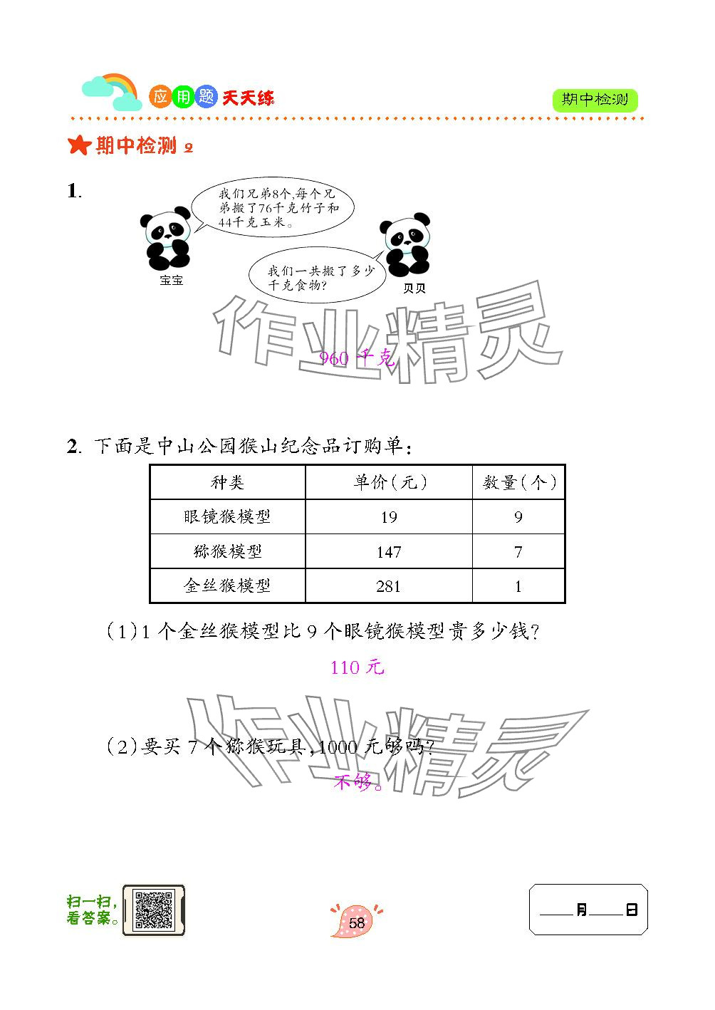 注:目前有些书本章节名称可能整理的还不是很完善,但都是按照顺序排列的,请同学们按照顺序仔细查找。练习册 2024年应用题天天练青岛出版社三年级数学上册青岛版 答案主要是用来给同学们做完题方便对答案用的,请勿直接抄袭。