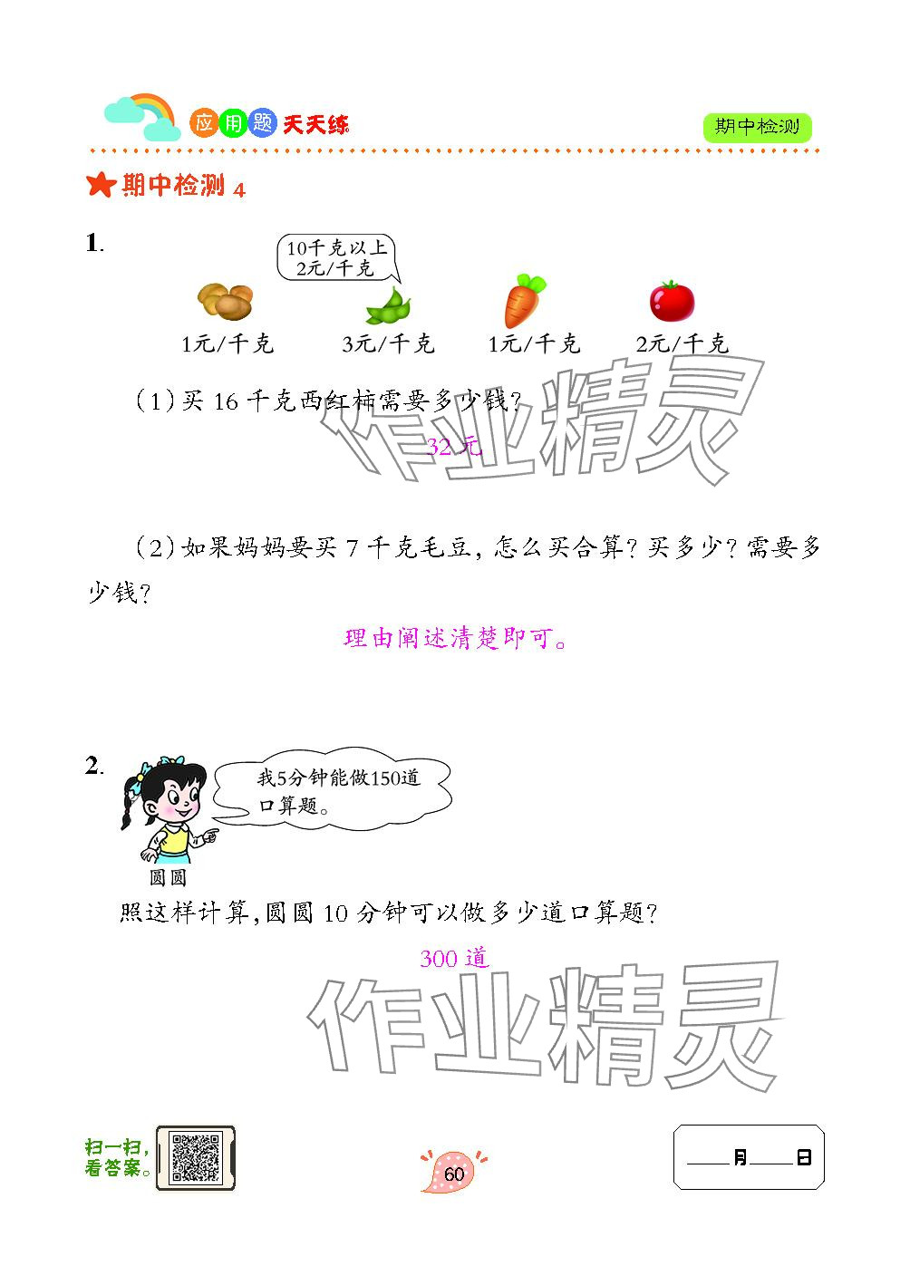 注:目前有些书本章节名称可能整理的还不是很完善,但都是按照顺序排列的,请同学们按照顺序仔细查找。练习册 2024年应用题天天练青岛出版社三年级数学上册青岛版 答案主要是用来给同学们做完题方便对答案用的,请勿直接抄袭。