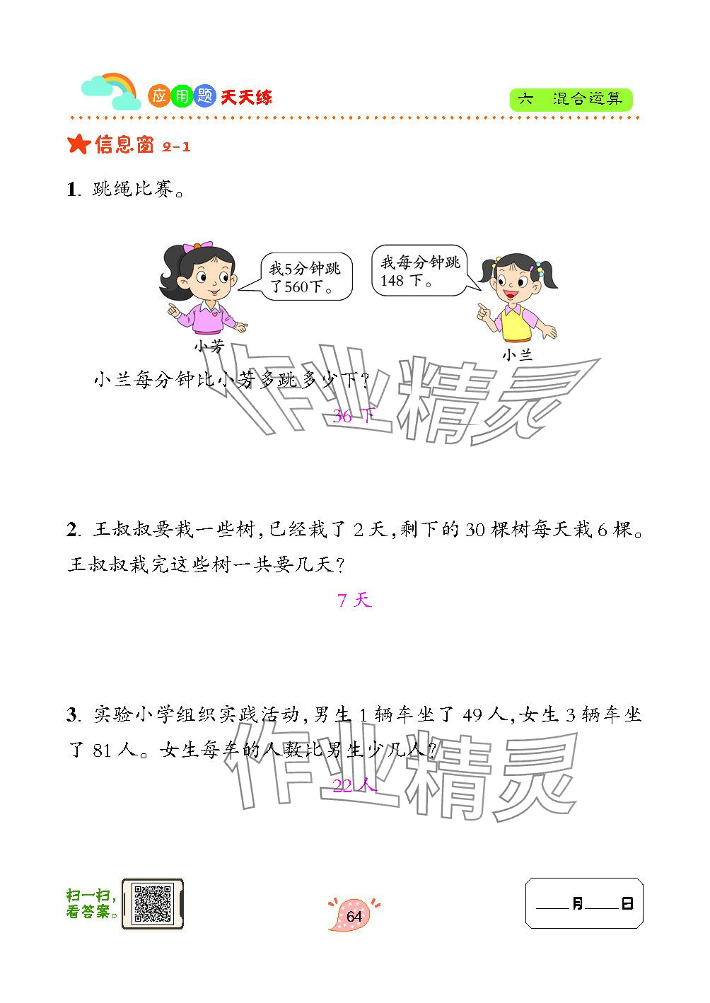 注:目前有些书本章节名称可能整理的还不是很完善,但都是按照顺序排列的,请同学们按照顺序仔细查找。练习册 2024年应用题天天练青岛出版社三年级数学上册青岛版 答案主要是用来给同学们做完题方便对答案用的,请勿直接抄袭。