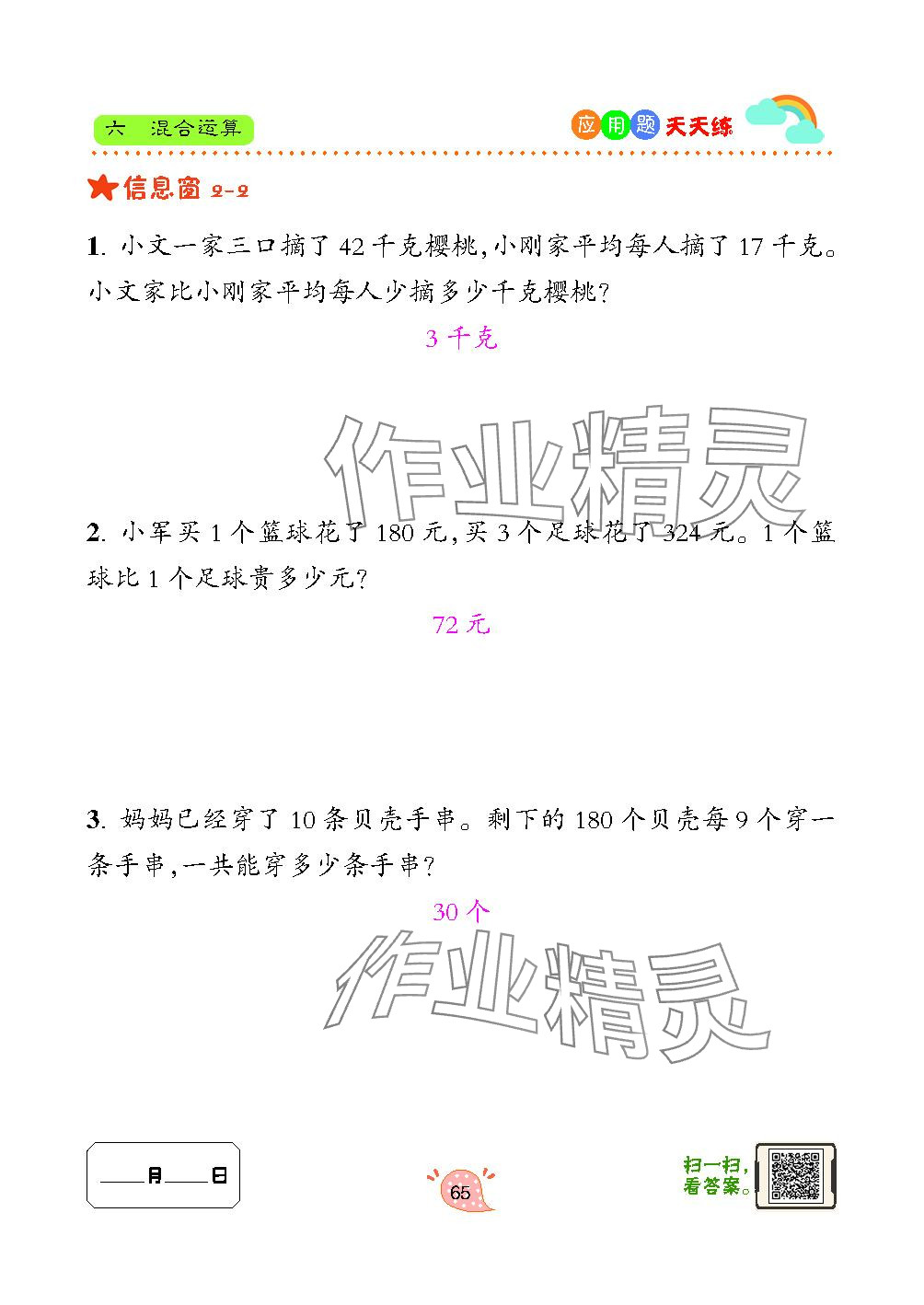 注:目前有些书本章节名称可能整理的还不是很完善,但都是按照顺序排列的,请同学们按照顺序仔细查找。练习册 2024年应用题天天练青岛出版社三年级数学上册青岛版 答案主要是用来给同学们做完题方便对答案用的,请勿直接抄袭。
