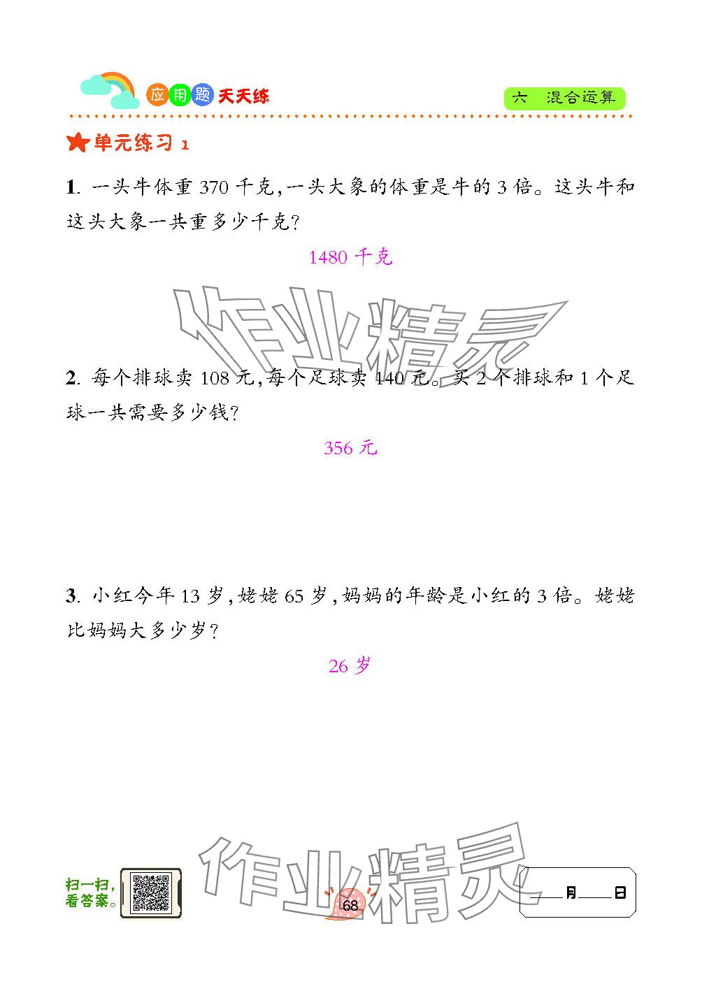 注:目前有些书本章节名称可能整理的还不是很完善,但都是按照顺序排列的,请同学们按照顺序仔细查找。练习册 2024年应用题天天练青岛出版社三年级数学上册青岛版 答案主要是用来给同学们做完题方便对答案用的,请勿直接抄袭。