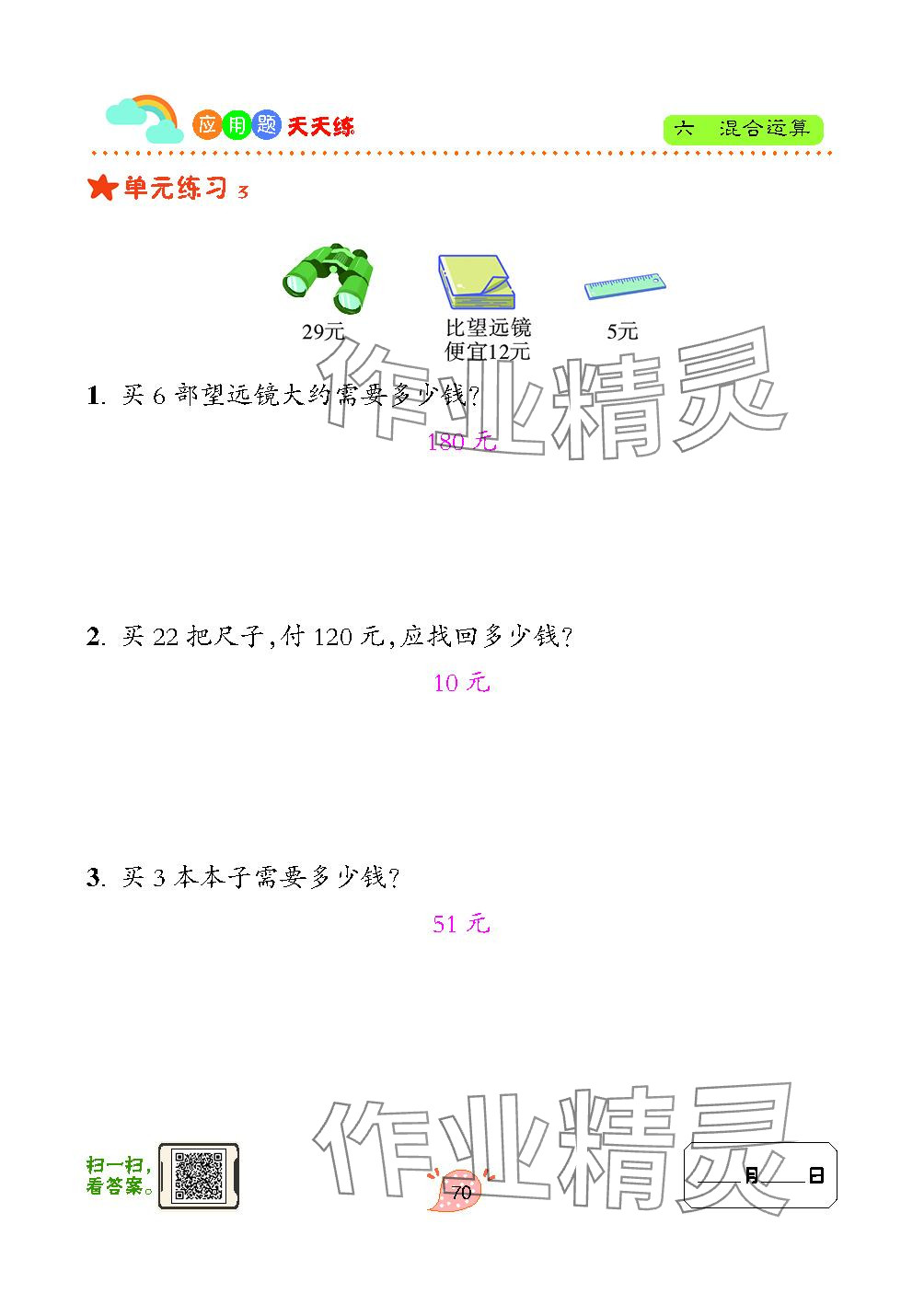 注:目前有些书本章节名称可能整理的还不是很完善,但都是按照顺序排列的,请同学们按照顺序仔细查找。练习册 2024年应用题天天练青岛出版社三年级数学上册青岛版 答案主要是用来给同学们做完题方便对答案用的,请勿直接抄袭。