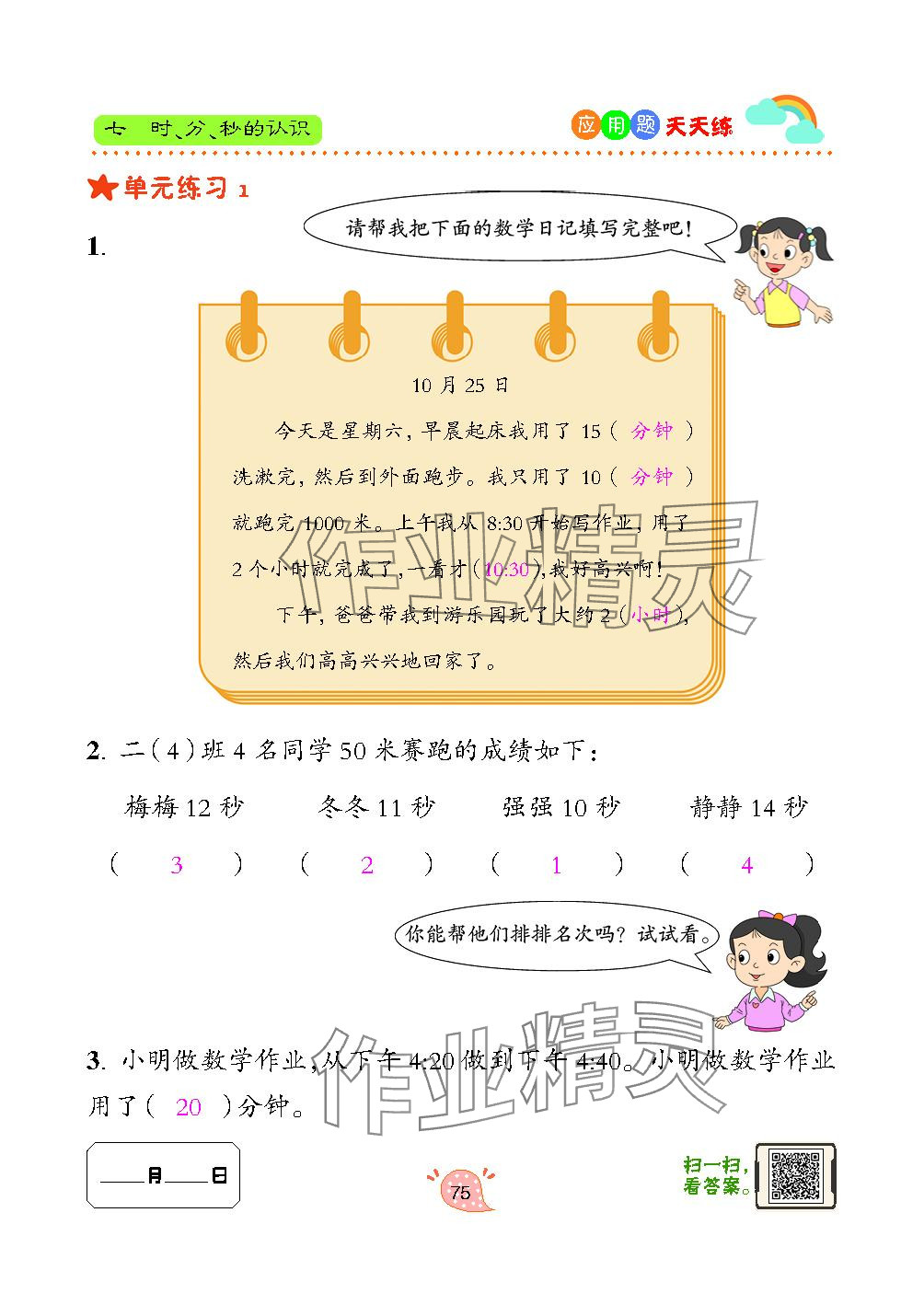 注:目前有些书本章节名称可能整理的还不是很完善,但都是按照顺序排列的,请同学们按照顺序仔细查找。练习册 2024年应用题天天练青岛出版社三年级数学上册青岛版 答案主要是用来给同学们做完题方便对答案用的,请勿直接抄袭。
