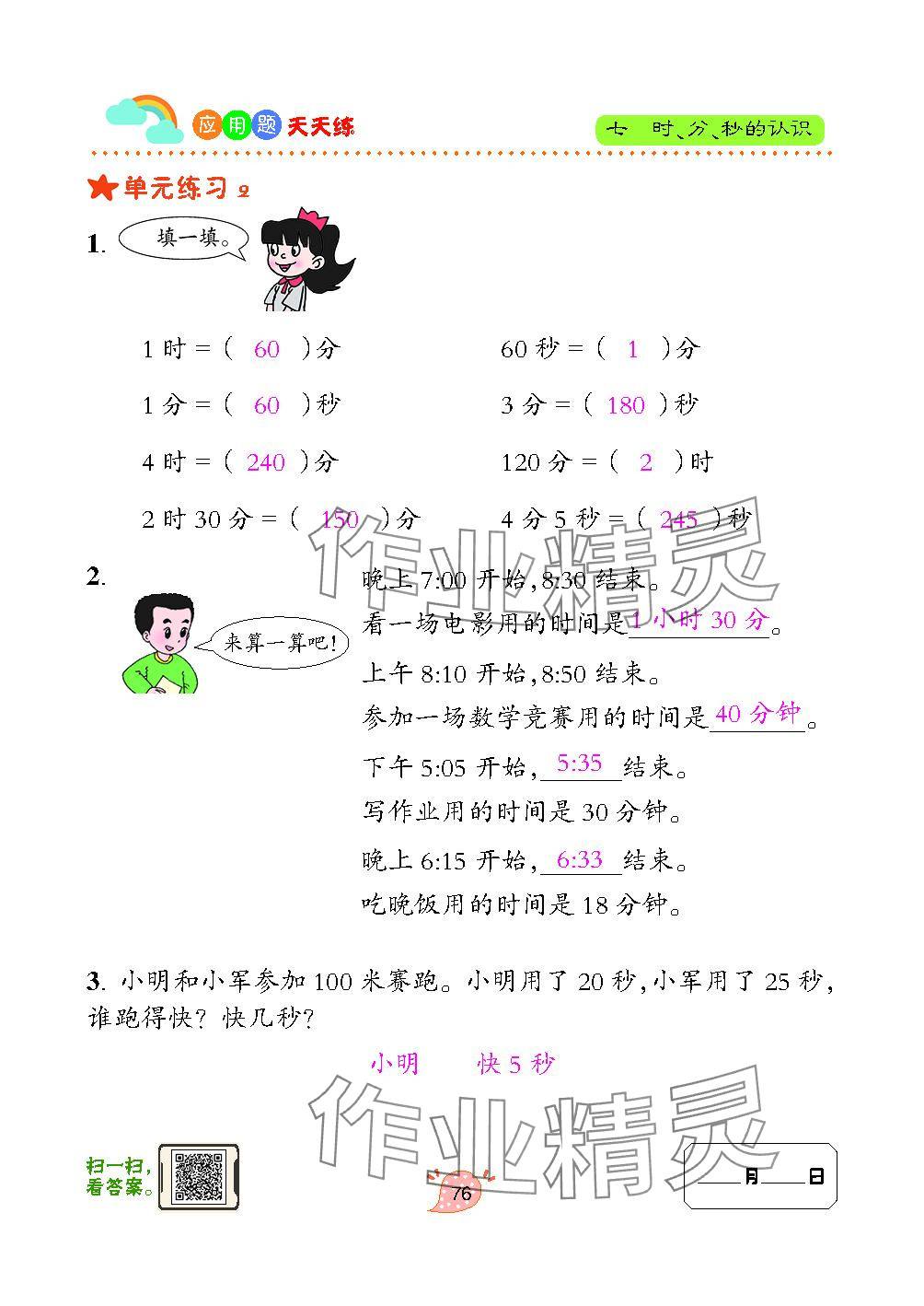 注:目前有些书本章节名称可能整理的还不是很完善,但都是按照顺序排列的,请同学们按照顺序仔细查找。练习册 2024年应用题天天练青岛出版社三年级数学上册青岛版 答案主要是用来给同学们做完题方便对答案用的,请勿直接抄袭。