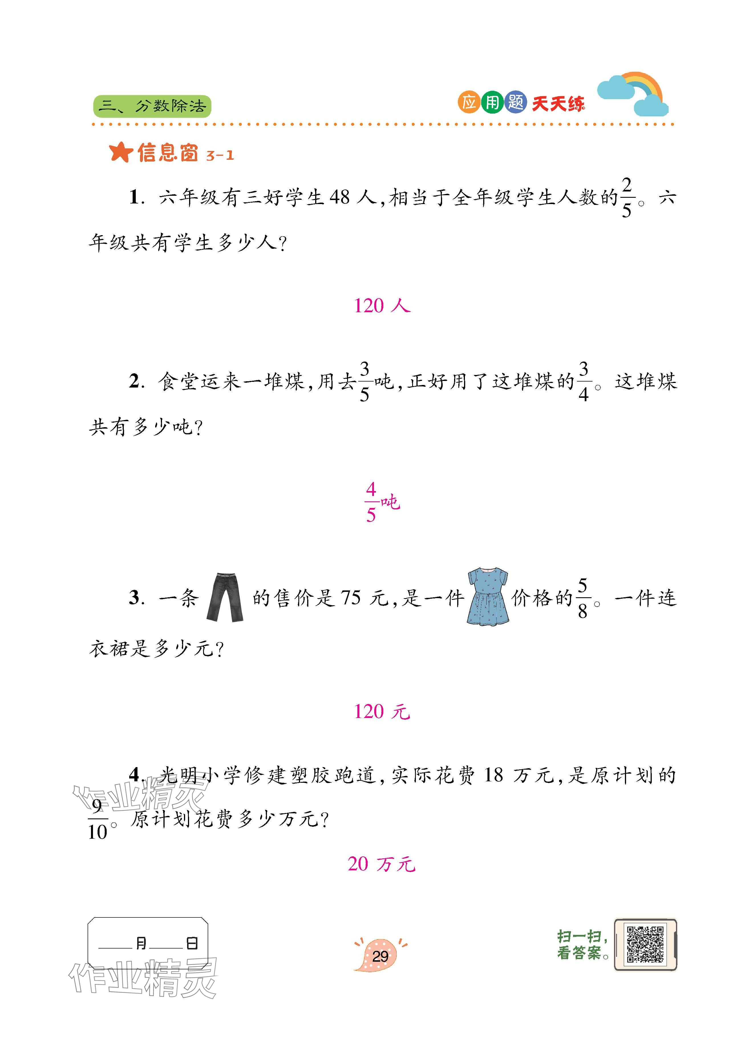 注:目前有些书本章节名称可能整理的还不是很完善,但都是按照顺序排列的,请同学们按照顺序仔细查找。练习册 2024年应用题天天练青岛出版社六年级数学上册青岛版 答案主要是用来给同学们做完题方便对答案用的,请勿直接抄袭。