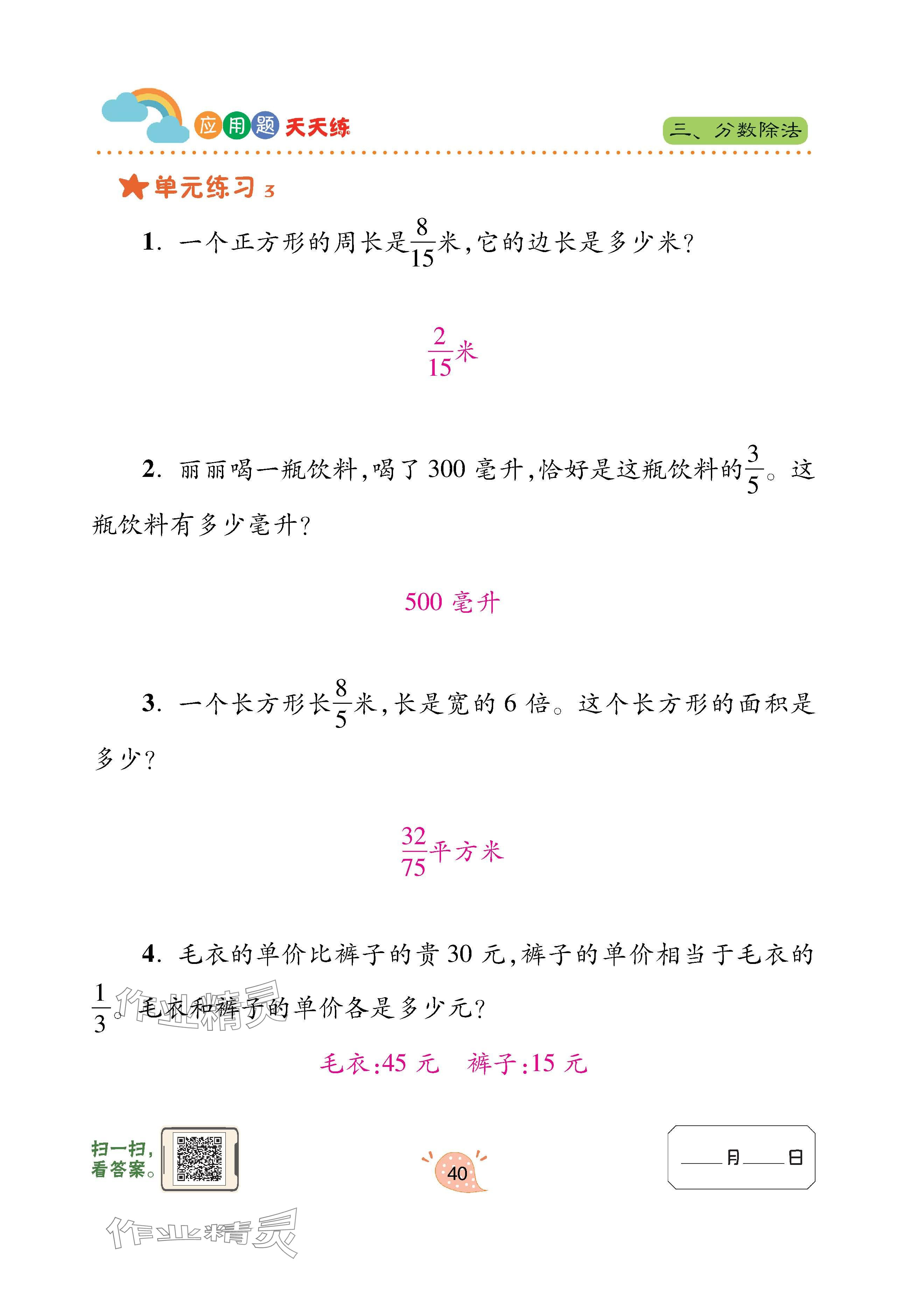 注:目前有些书本章节名称可能整理的还不是很完善,但都是按照顺序排列的,请同学们按照顺序仔细查找。练习册 2024年应用题天天练青岛出版社六年级数学上册青岛版 答案主要是用来给同学们做完题方便对答案用的,请勿直接抄袭。