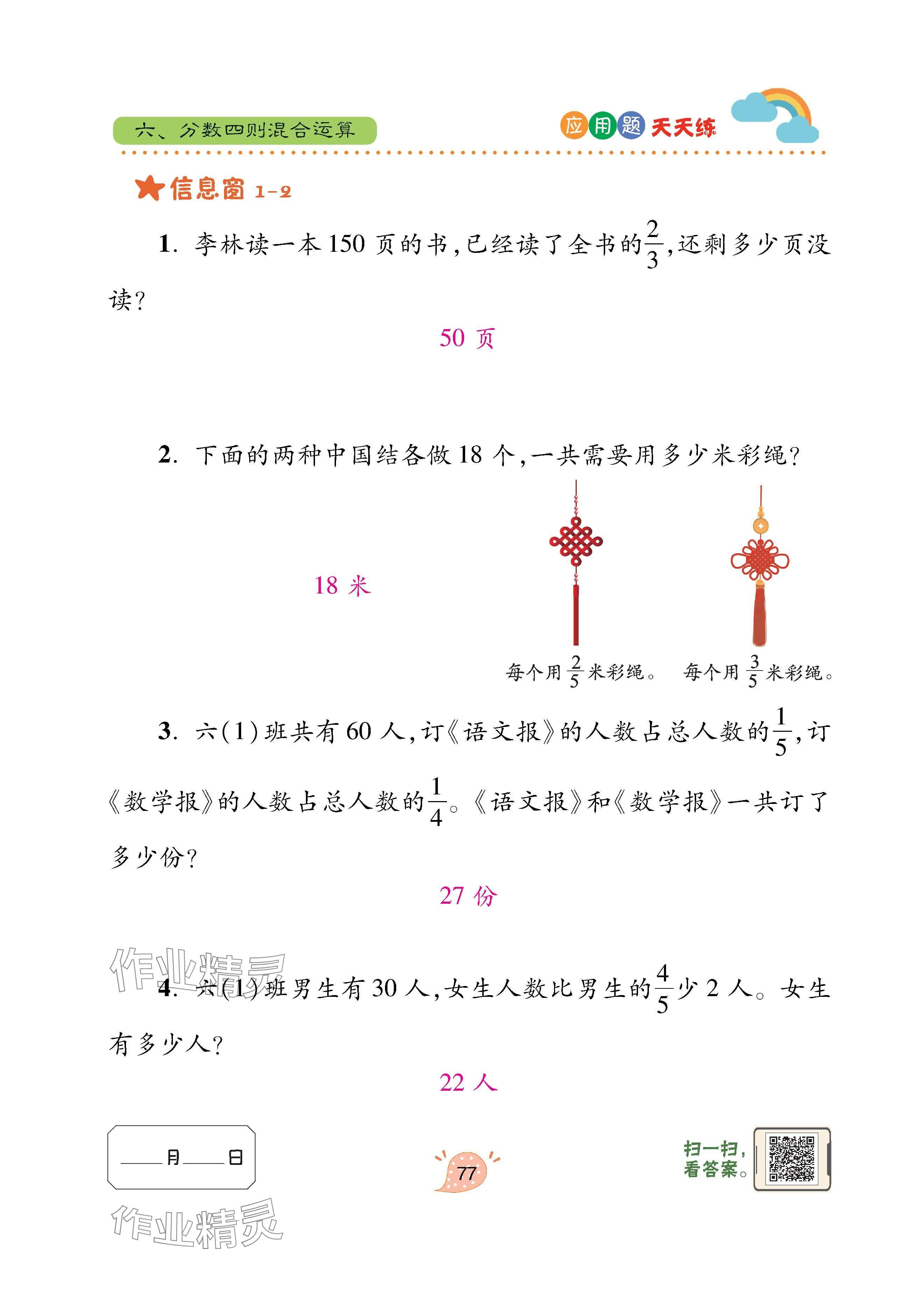 注:目前有些书本章节名称可能整理的还不是很完善,但都是按照顺序排列的,请同学们按照顺序仔细查找。练习册 2024年应用题天天练青岛出版社六年级数学上册青岛版 答案主要是用来给同学们做完题方便对答案用的,请勿直接抄袭。