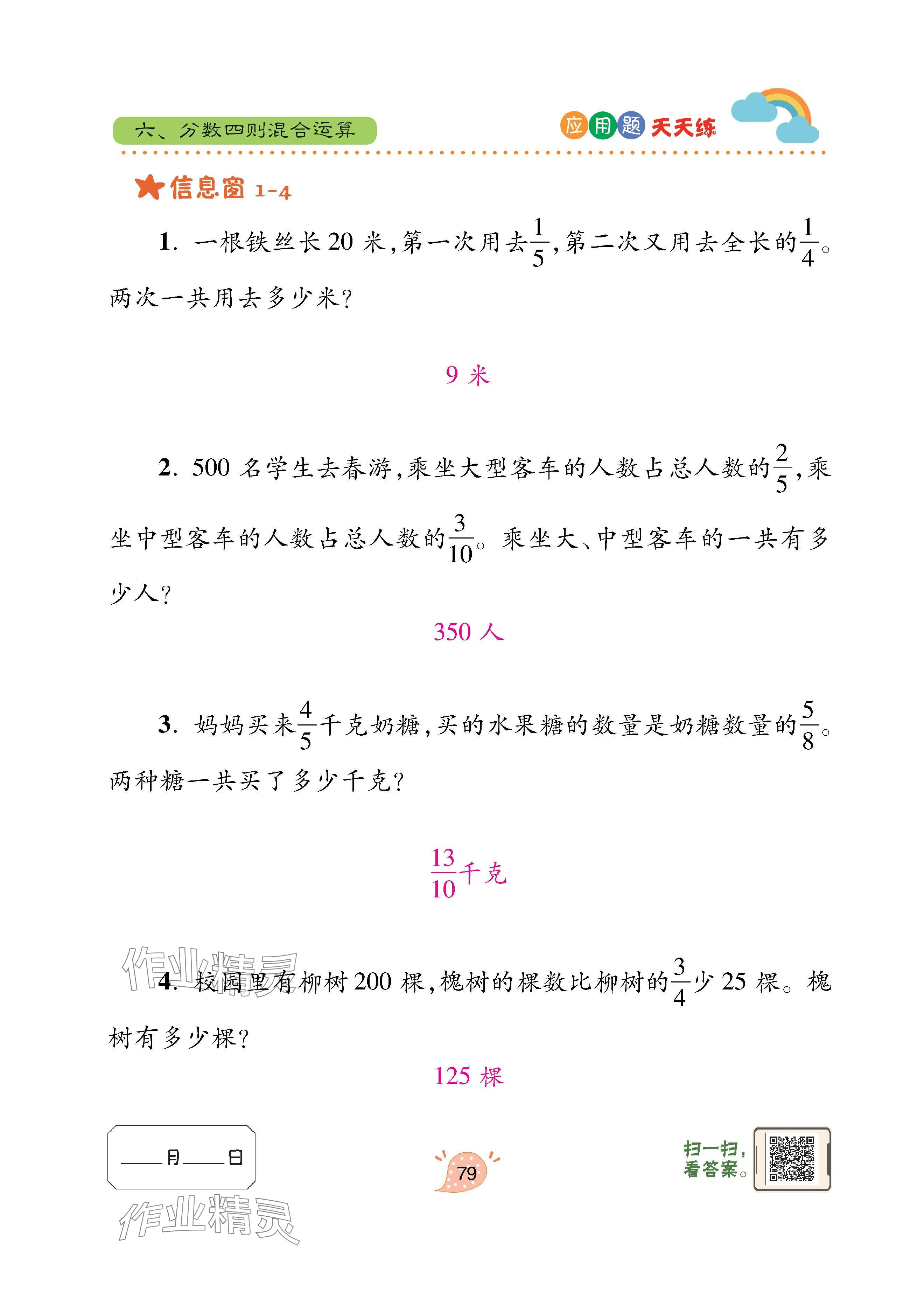 注:目前有些书本章节名称可能整理的还不是很完善,但都是按照顺序排列的,请同学们按照顺序仔细查找。练习册 2024年应用题天天练青岛出版社六年级数学上册青岛版 答案主要是用来给同学们做完题方便对答案用的,请勿直接抄袭。