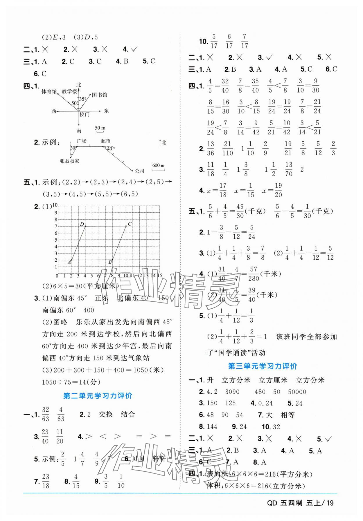 注:目前有些书本章节名称可能整理的还不是很完善,但都是按照顺序排列的,请同学们按照顺序仔细查找。练习册 2024年阳光同学课时优化作业五年级数学上册青岛版五四制 答案主要是用来给同学们做完题方便对答案用的,请勿直接抄袭。