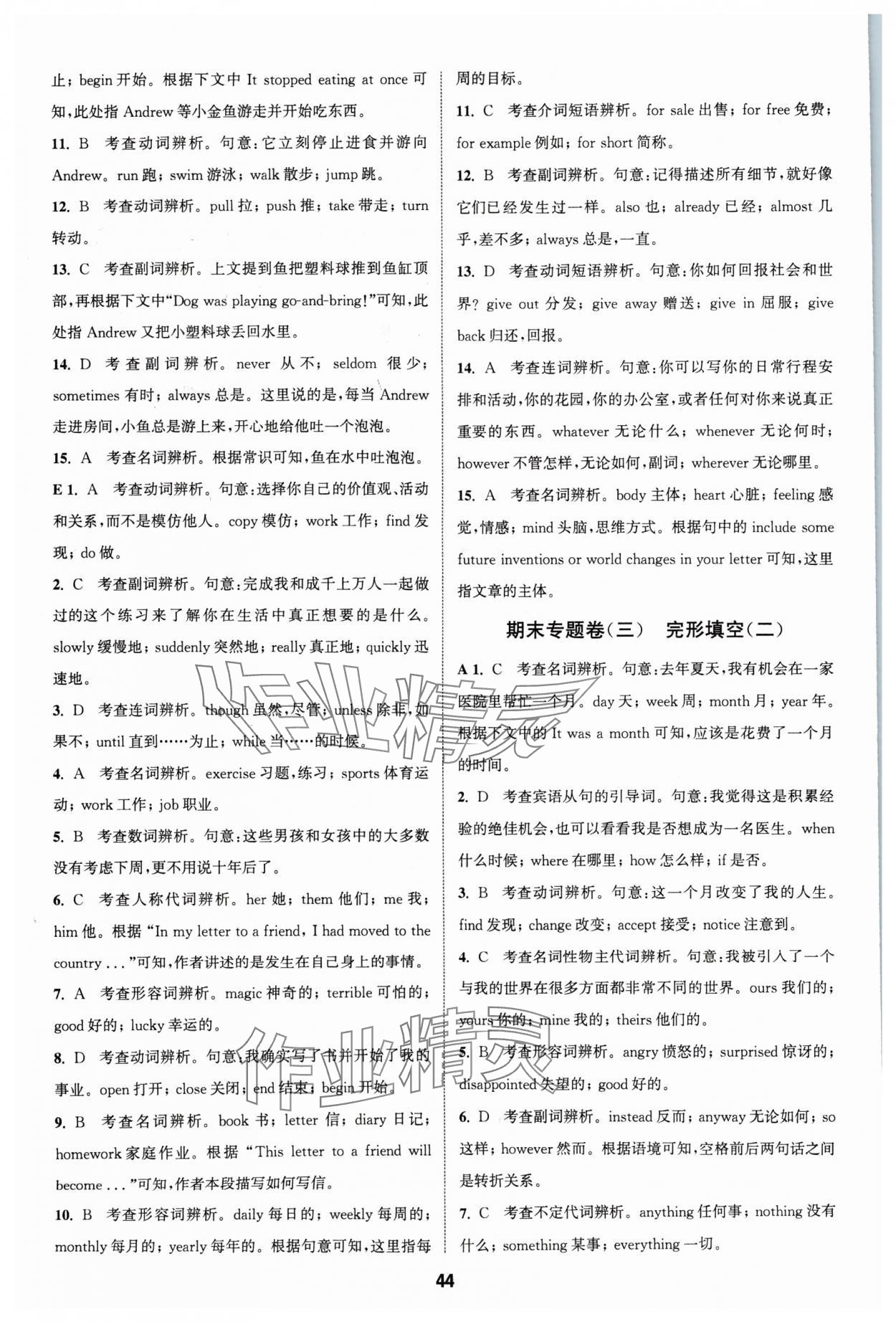 注:目前有些书本章节名称可能整理的还不是很完善,但都是按照顺序排列的,请同学们按照顺序仔细查找。练习册 2024年通城学典全程测评卷九年级英语全一册译林版 答案主要是用来给同学们做完题方便对答案用的,请勿直接抄袭。