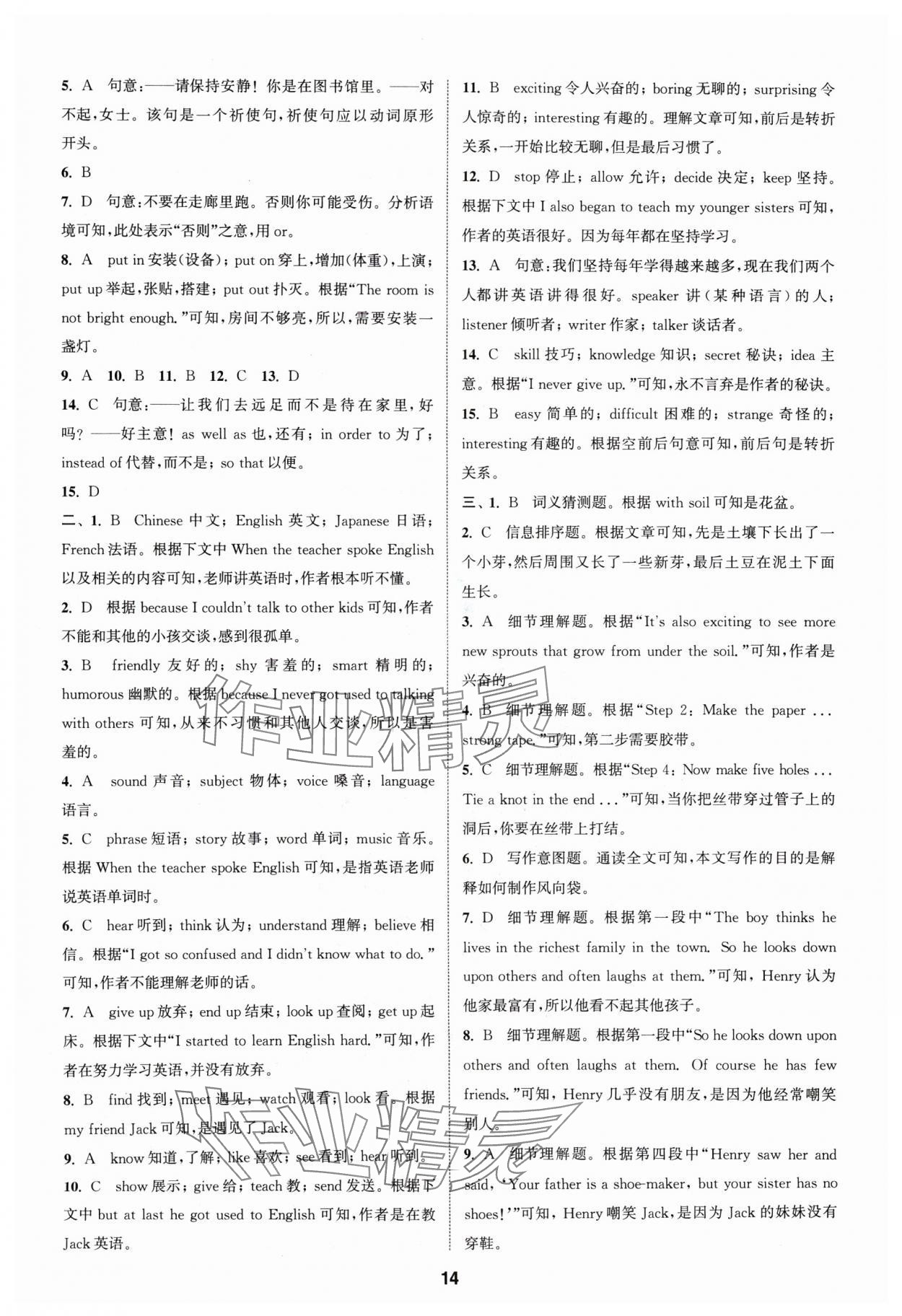 注:目前有些书本章节名称可能整理的还不是很完善,但都是按照顺序排列的,请同学们按照顺序仔细查找。练习册 2024年通城学典全程测评卷八年级英语上册译林版 答案主要是用来给同学们做完题方便对答案用的,请勿直接抄袭。