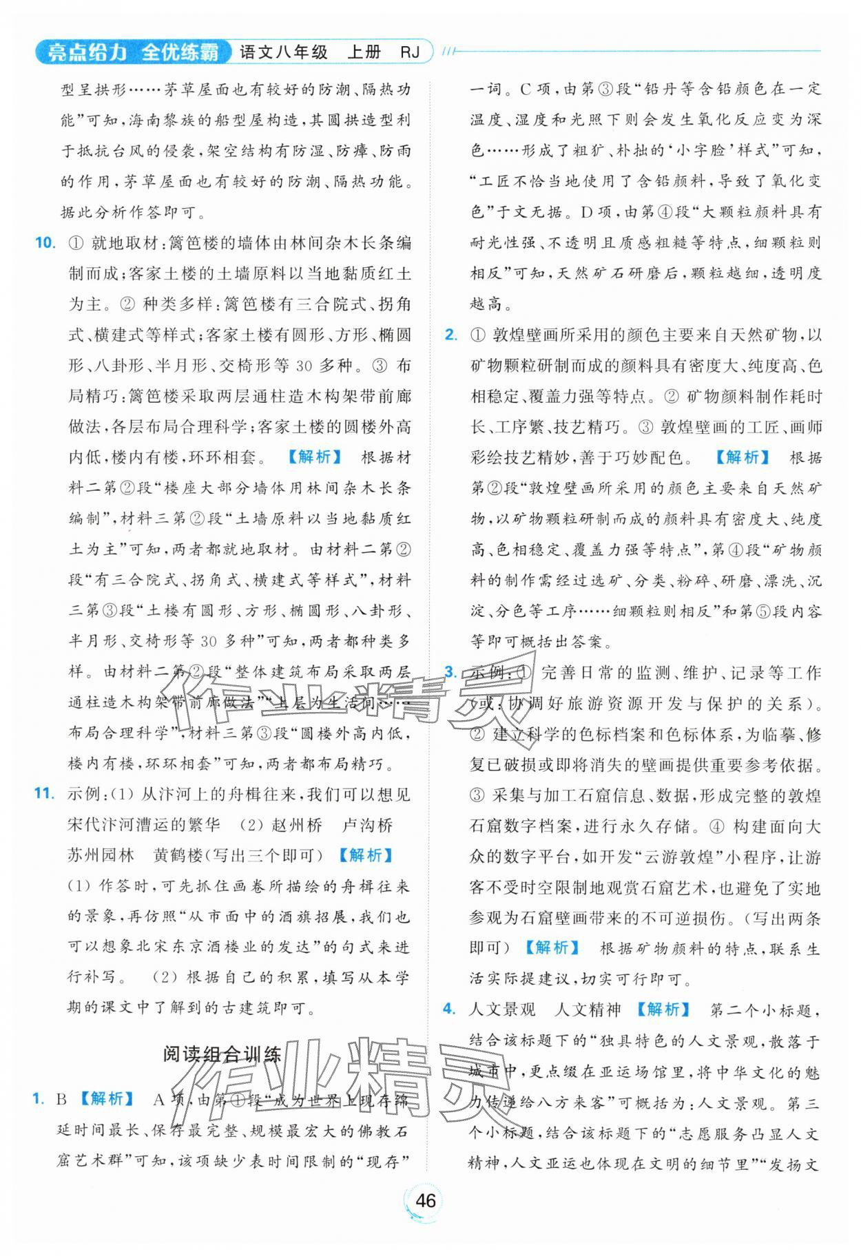 注:目前有些书本章节名称可能整理的还不是很完善,但都是按照顺序排列的,请同学们按照顺序仔细查找。练习册 2024年亮点给力全优练霸八年级语文上册人教版 答案主要是用来给同学们做完题方便对答案用的,请勿直接抄袭。