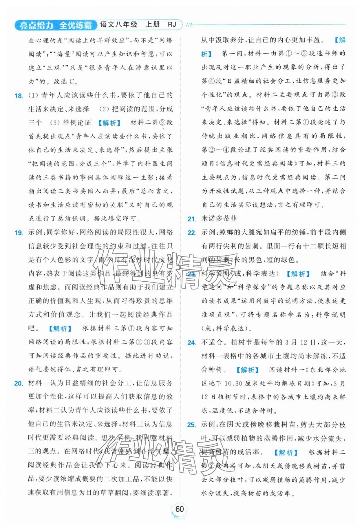 注:目前有些书本章节名称可能整理的还不是很完善,但都是按照顺序排列的,请同学们按照顺序仔细查找。练习册 2024年亮点给力全优练霸八年级语文上册人教版 答案主要是用来给同学们做完题方便对答案用的,请勿直接抄袭。
