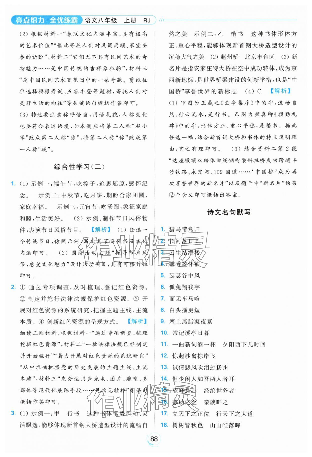 2024年亮点给力全优练霸八年级语文上册人教版