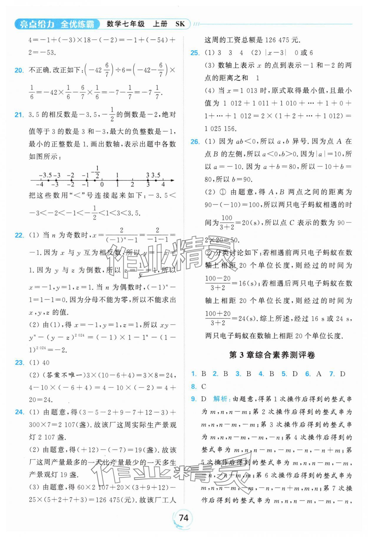 2024年亮点给力全优练霸七年级数学上册苏科版