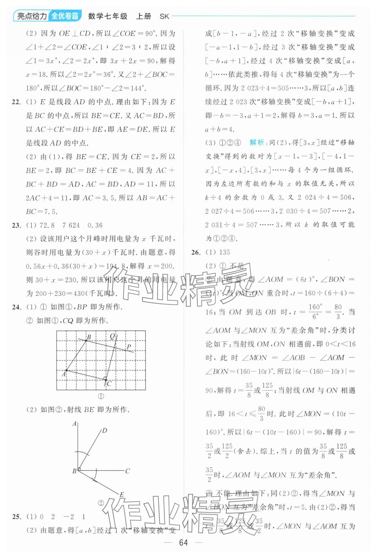 2024年亮点给力全优卷霸七年级数学上册苏科版