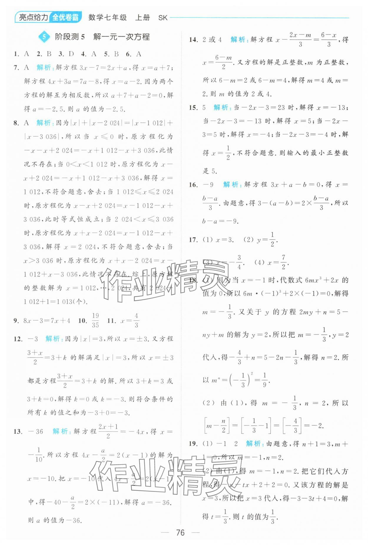 2024年亮点给力全优卷霸七年级数学上册苏科版