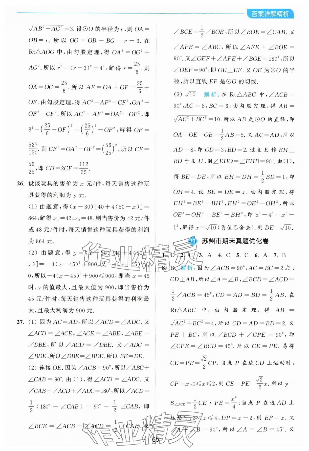 注:目前有些书本章节名称可能整理的还不是很完善,但都是按照顺序排列的,请同学们按照顺序仔细查找。练习册 2024年亮点给力全优卷霸九年级数学上册苏科版 答案主要是用来给同学们做完题方便对答案用的,请勿直接抄袭。