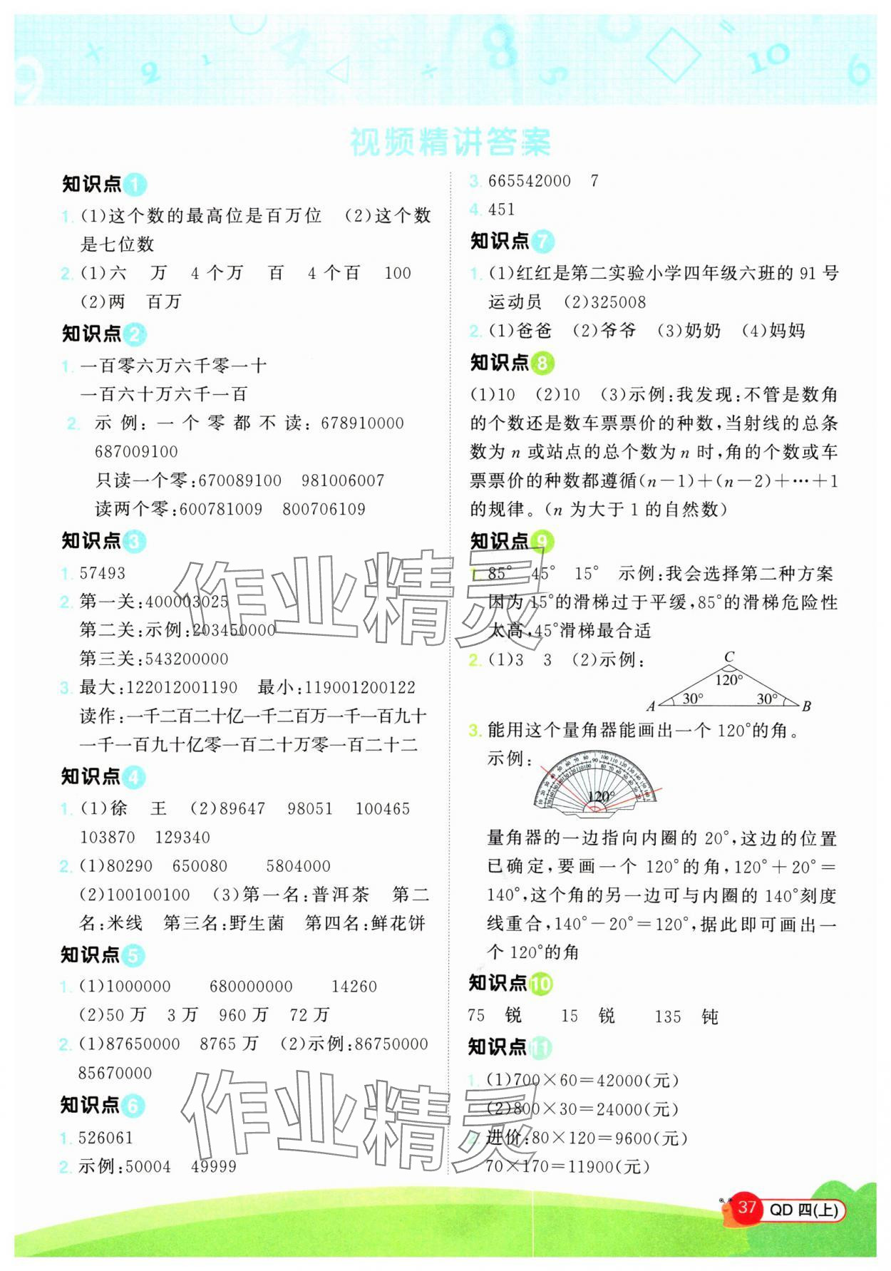 注:目前有些书本章节名称可能整理的还不是很完善,但都是按照顺序排列的,请同学们按照顺序仔细查找。练习册 2024年阳光同学计算小达人四年级数学上册青岛版 答案主要是用来给同学们做完题方便对答案用的,请勿直接抄袭。