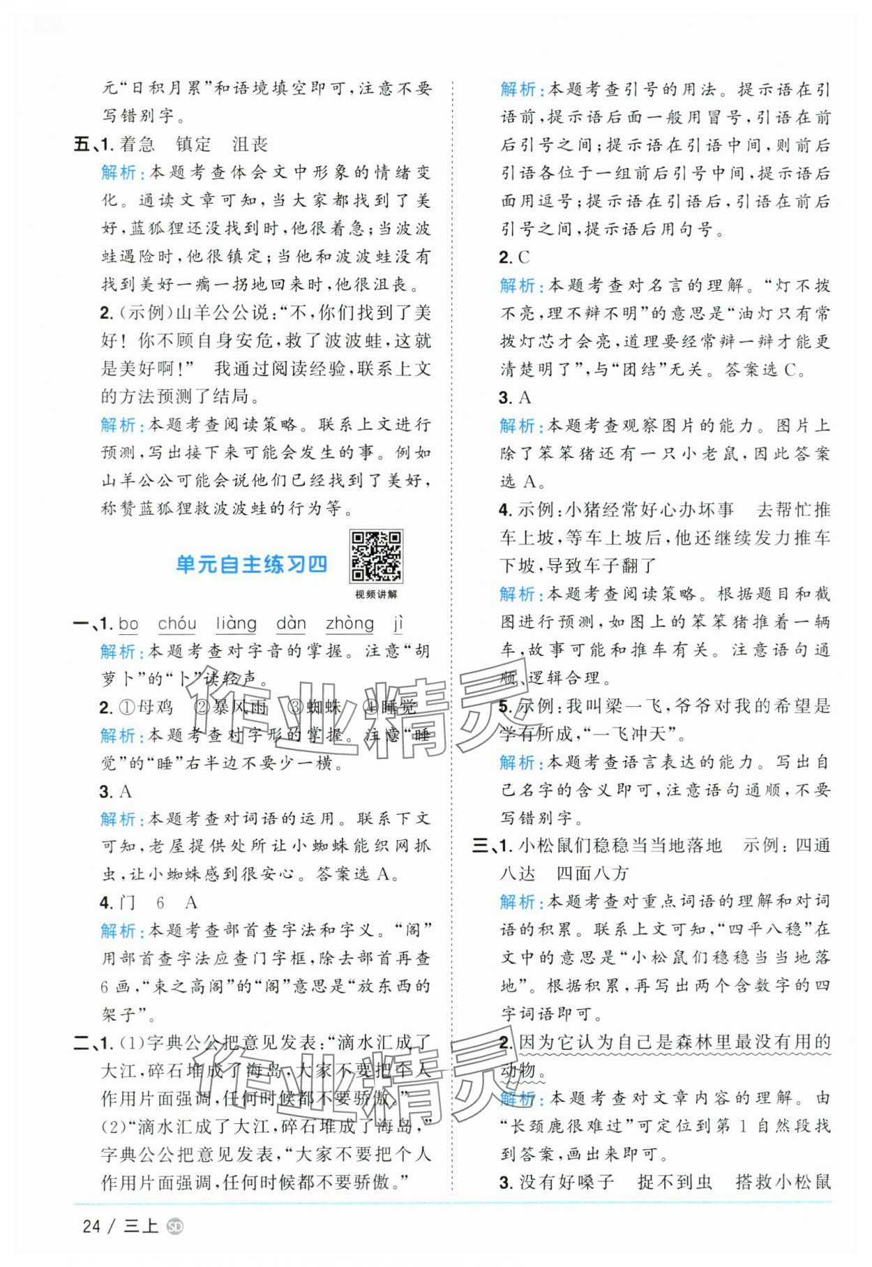 注:目前有些书本章节名称可能整理的还不是很完善,但都是按照顺序排列的,请同学们按照顺序仔细查找。练习册 2024年阳光同学课时优化作业三年级语文上册人教版菏泽专版 答案主要是用来给同学们做完题方便对答案用的,请勿直接抄袭。