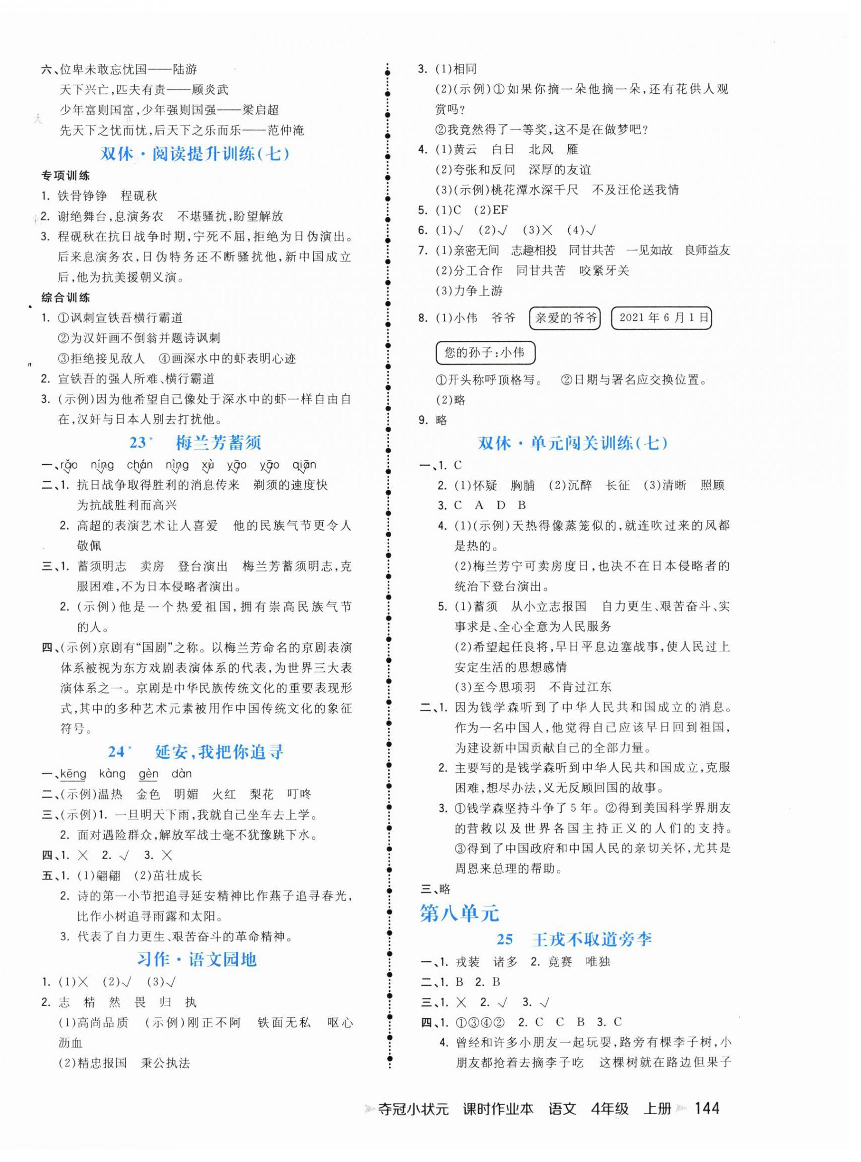 注:目前有些书本章节名称可能整理的还不是很完善,但都是按照顺序排列的,请同学们按照顺序仔细查找。练习册 2024年夺冠小状元课时作业本四年级语文上册人教版 答案主要是用来给同学们做完题方便对答案用的,请勿直接抄袭。