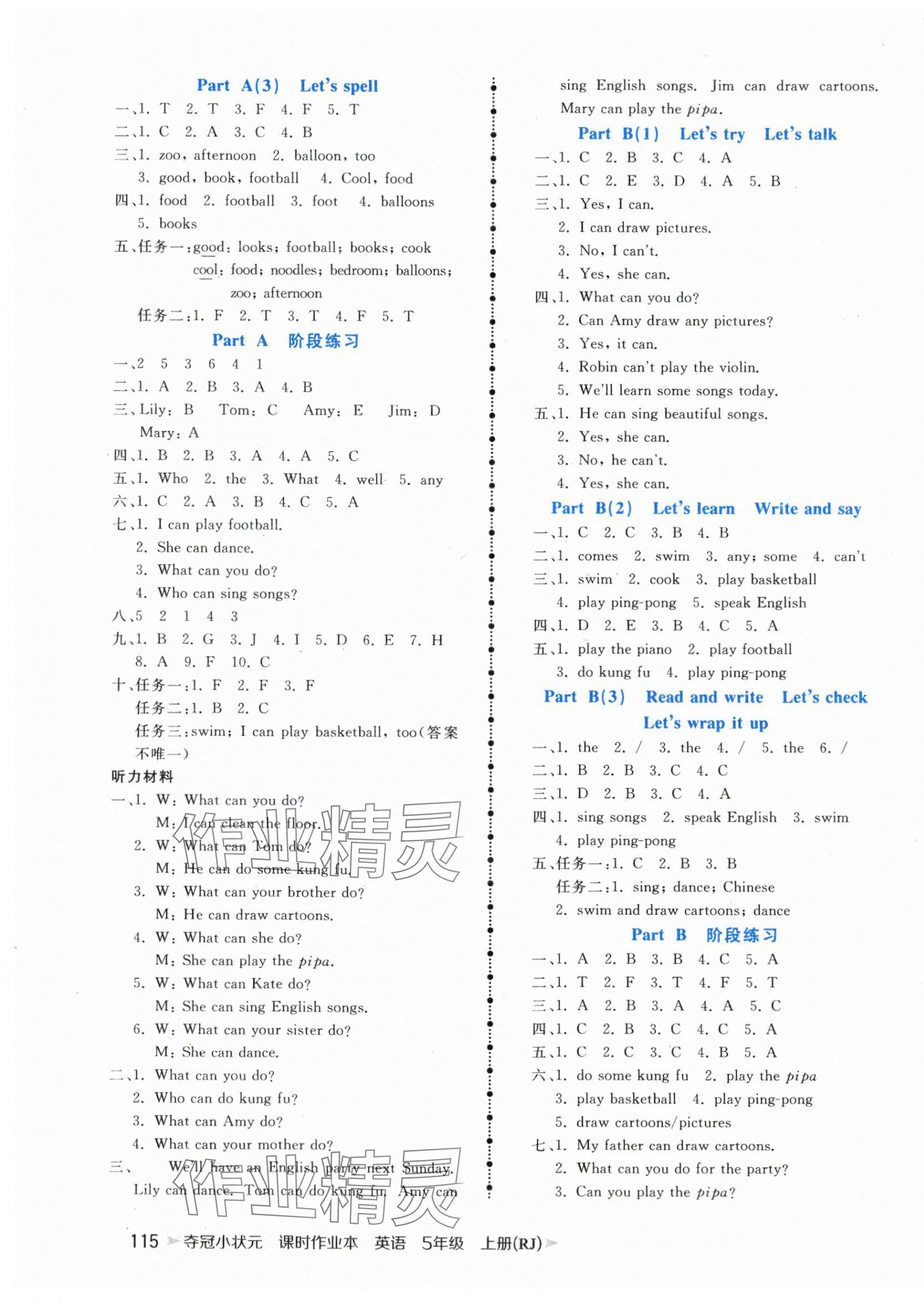 注:目前有些书本章节名称可能整理的还不是很完善,但都是按照顺序排列的,请同学们按照顺序仔细查找。练习册 2024年夺冠小状元课时作业本五年级英语上册人教版 答案主要是用来给同学们做完题方便对答案用的,请勿直接抄袭。