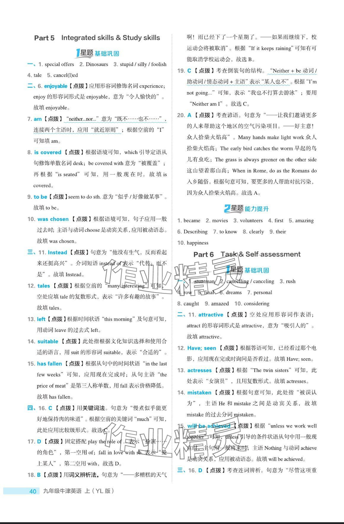 注:目前有些书本章节名称可能整理的还不是很完善,但都是按照顺序排列的,请同学们按照顺序仔细查找。练习册 2024年点拨训练九年级英语上册译林版 答案主要是用来给同学们做完题方便对答案用的,请勿直接抄袭。