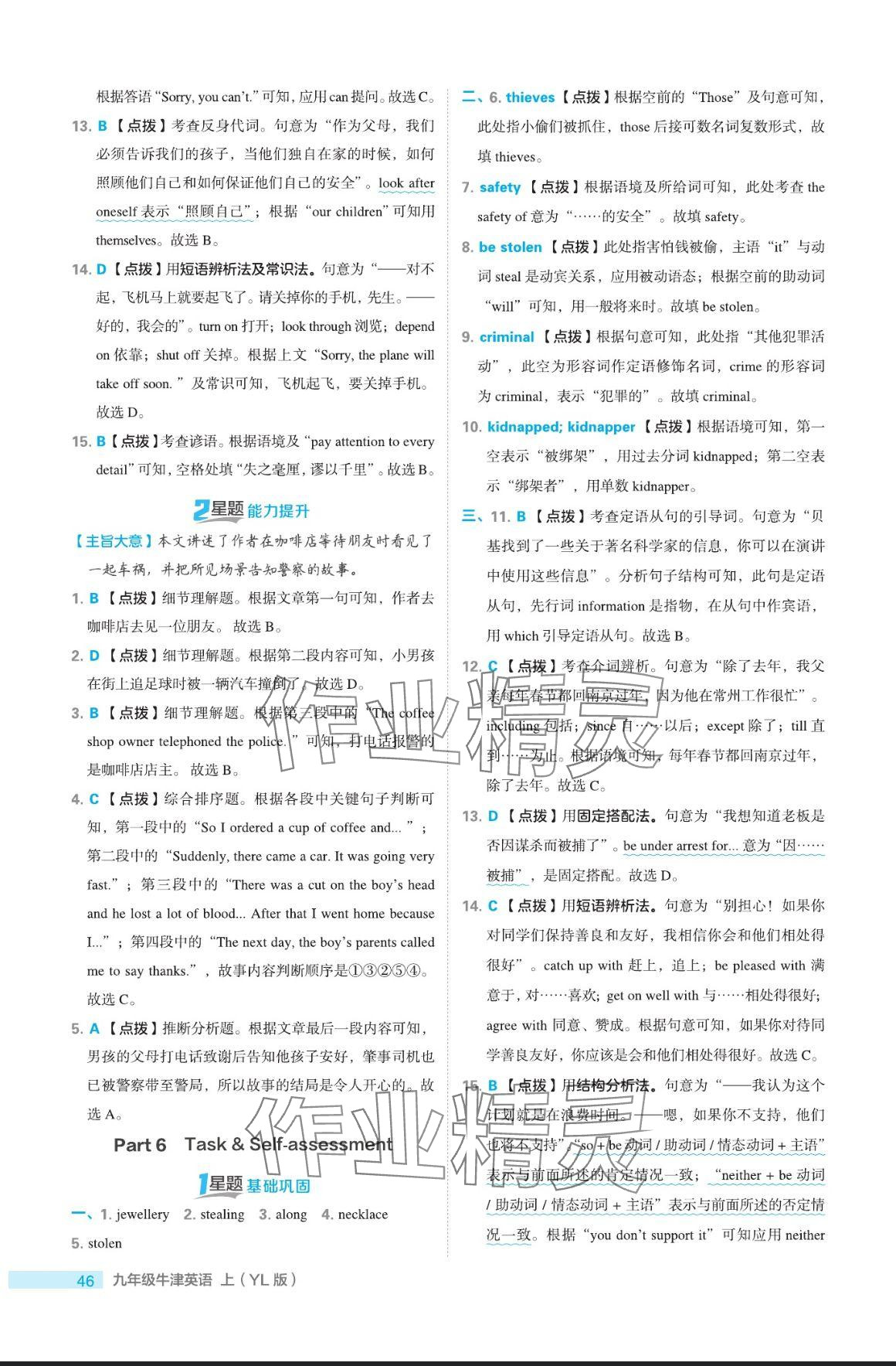 注:目前有些书本章节名称可能整理的还不是很完善,但都是按照顺序排列的,请同学们按照顺序仔细查找。练习册 2024年点拨训练九年级英语上册译林版 答案主要是用来给同学们做完题方便对答案用的,请勿直接抄袭。