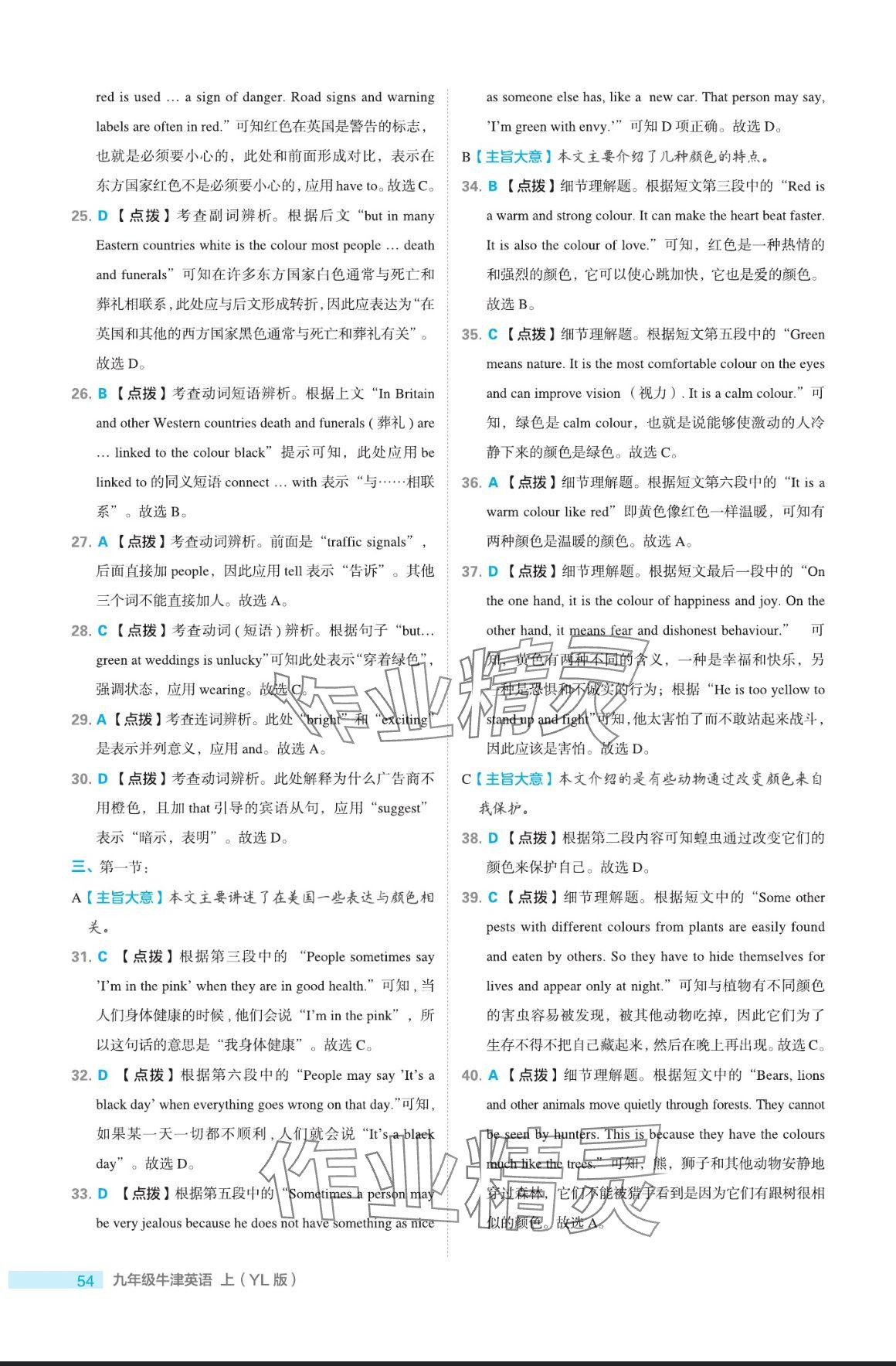 注:目前有些书本章节名称可能整理的还不是很完善,但都是按照顺序排列的,请同学们按照顺序仔细查找。练习册 2024年点拨训练九年级英语上册译林版 答案主要是用来给同学们做完题方便对答案用的,请勿直接抄袭。