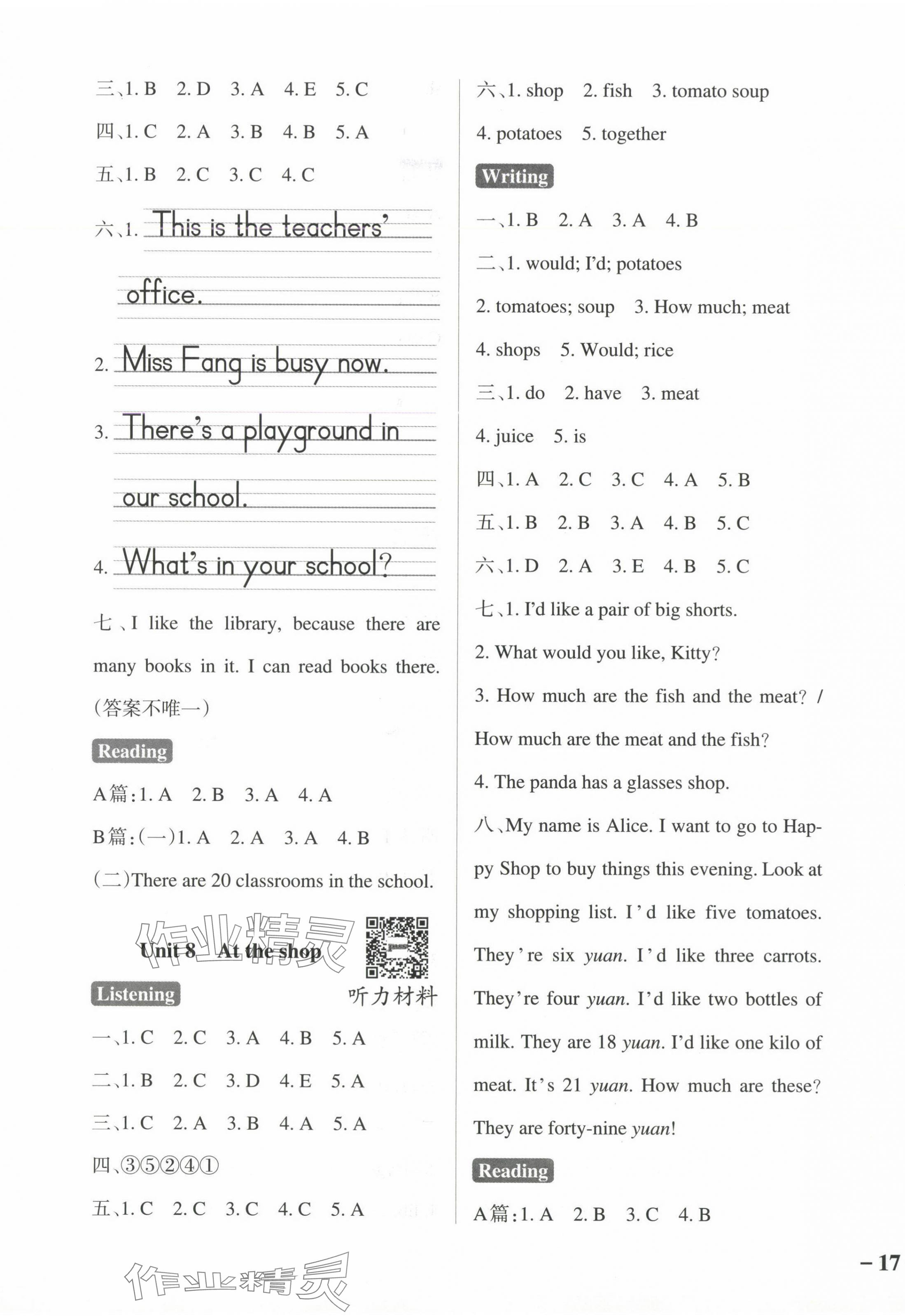 注:目前有些书本章节名称可能整理的还不是很完善,但都是按照顺序排列的,请同学们按照顺序仔细查找。练习册 2024年小学学霸作业本四年级英语上册沪教牛津版深圳专版 答案主要是用来给同学们做完题方便对答案用的,请勿直接抄袭。