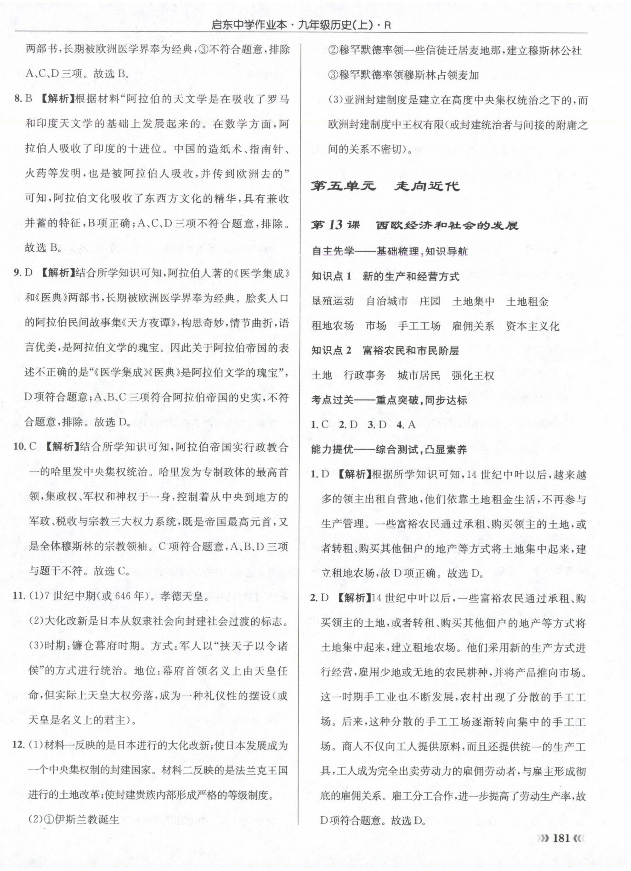 注:目前有些书本章节名称可能整理的还不是很完善,但都是按照顺序排列的,请同学们按照顺序仔细查找。练习册 2024年启东中学作业本九年级历史上册人教版 答案主要是用来给同学们做完题方便对答案用的,请勿直接抄袭。