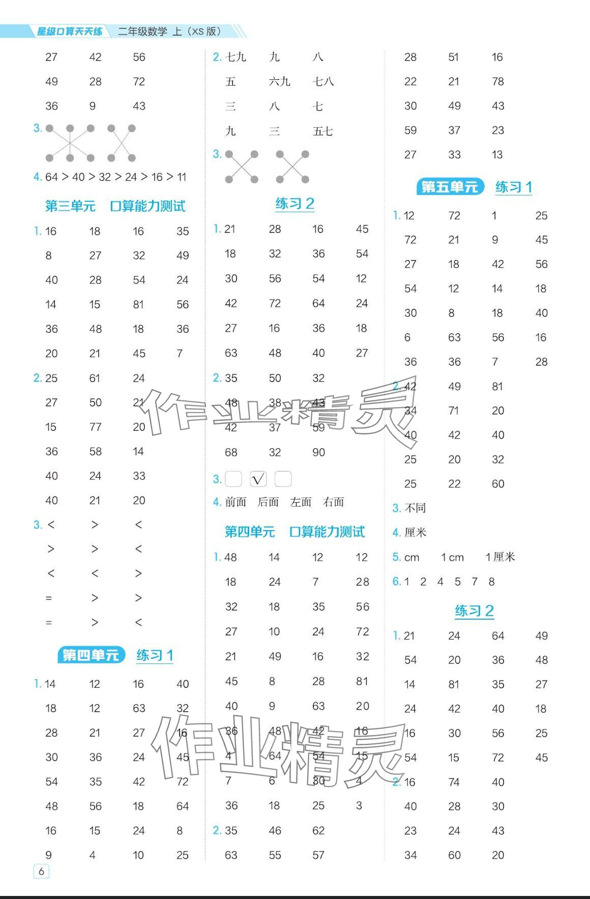 注:目前有些书本章节名称可能整理的还不是很完善,但都是按照顺序排列的,请同学们按照顺序仔细查找。练习册 2024年星级口算天天练二年级数学上册西师大版 答案主要是用来给同学们做完题方便对答案用的,请勿直接抄袭。