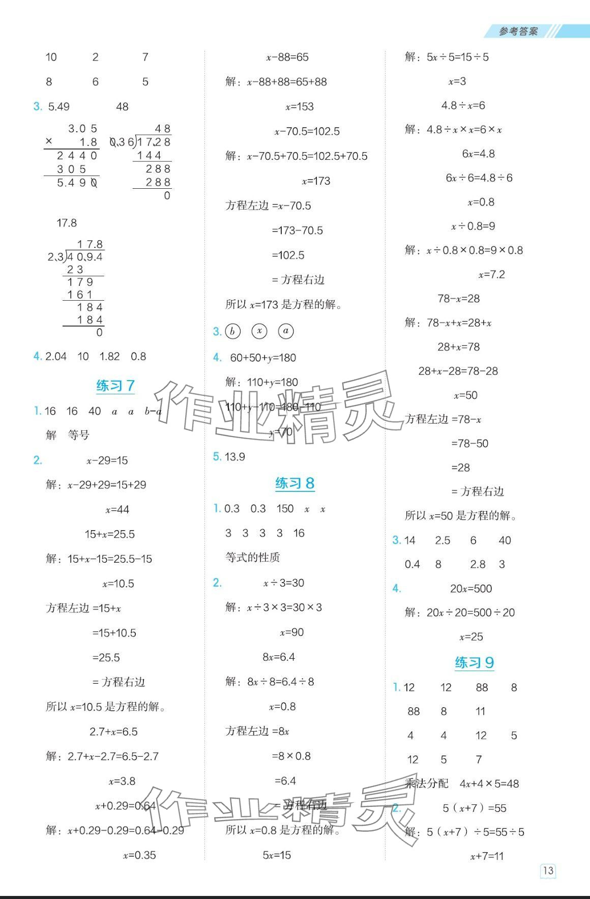 注:目前有些书本章节名称可能整理的还不是很完善,但都是按照顺序排列的,请同学们按照顺序仔细查找。练习册 2024年星级口算天天练五年级数学上册人教版 答案主要是用来给同学们做完题方便对答案用的,请勿直接抄袭。