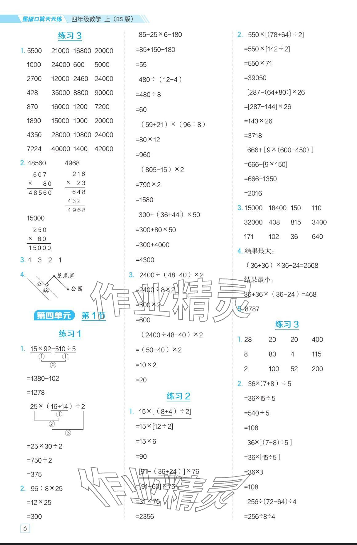 注:目前有些书本章节名称可能整理的还不是很完善,但都是按照顺序排列的,请同学们按照顺序仔细查找。练习册 2024年星级口算天天练四年级数学上册北师大版 答案主要是用来给同学们做完题方便对答案用的,请勿直接抄袭。