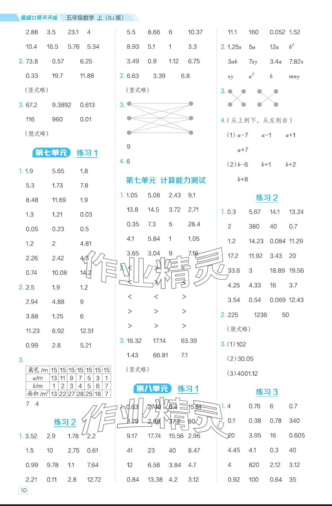 注:目前有些书本章节名称可能整理的还不是很完善,但都是按照顺序排列的,请同学们按照顺序仔细查找。练习册 2024年星级口算天天练五年级数学上册苏教版 答案主要是用来给同学们做完题方便对答案用的,请勿直接抄袭。