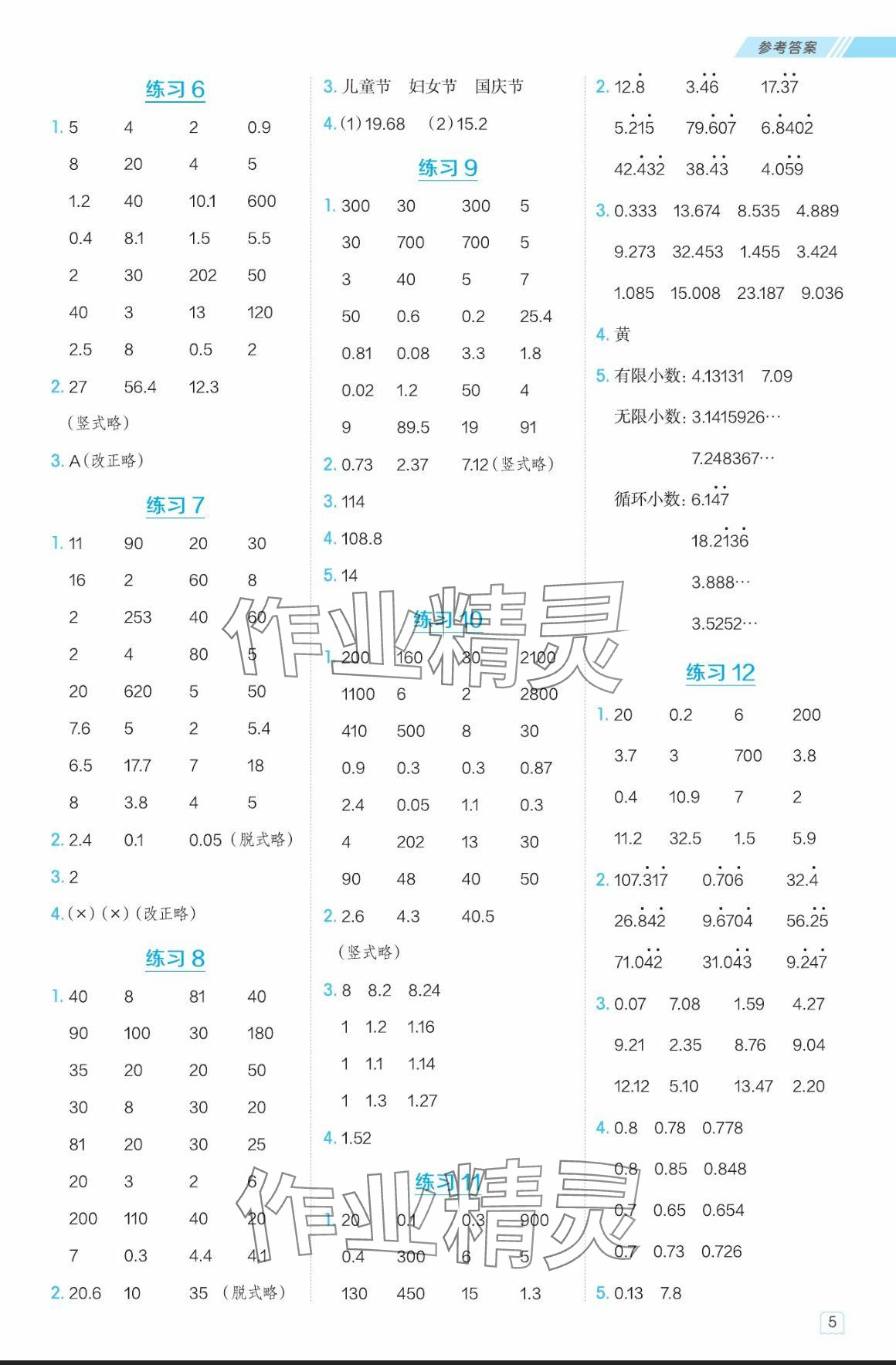 注:目前有些书本章节名称可能整理的还不是很完善,但都是按照顺序排列的,请同学们按照顺序仔细查找。练习册 2024年星级口算天天练五年级数学上册西师大版 答案主要是用来给同学们做完题方便对答案用的,请勿直接抄袭。