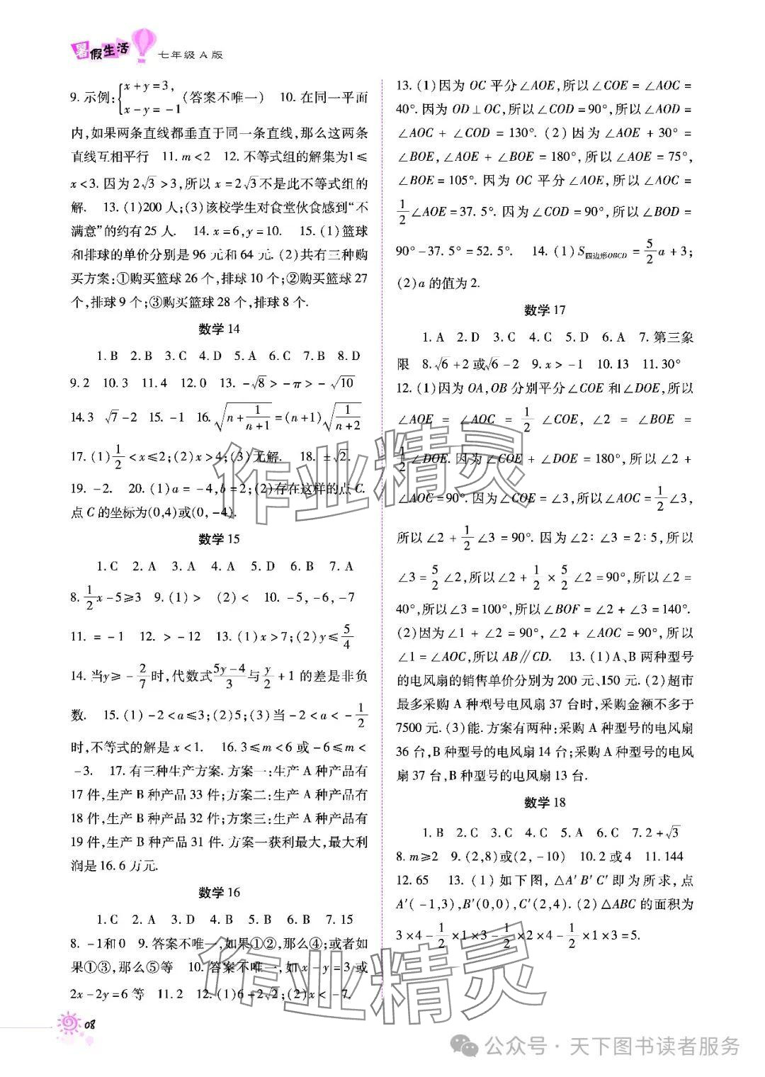 注:目前有些书本章节名称可能整理的还不是很完善,但都是按照顺序排列的,请同学们按照顺序仔细查找。练习册 2024年暑假生活重庆出版社七年级A版 答案主要是用来给同学们做完题方便对答案用的,请勿直接抄袭。